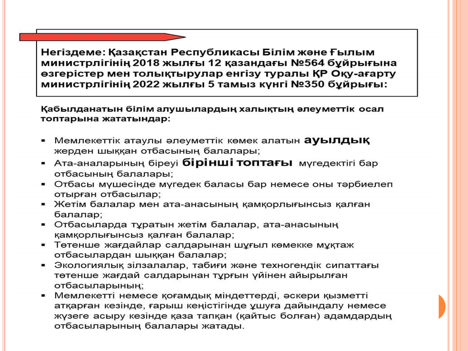 1.Баланың ата-анасынан немесе өзге де заңды өкілдерінен өтініш (үлгі бойынша);