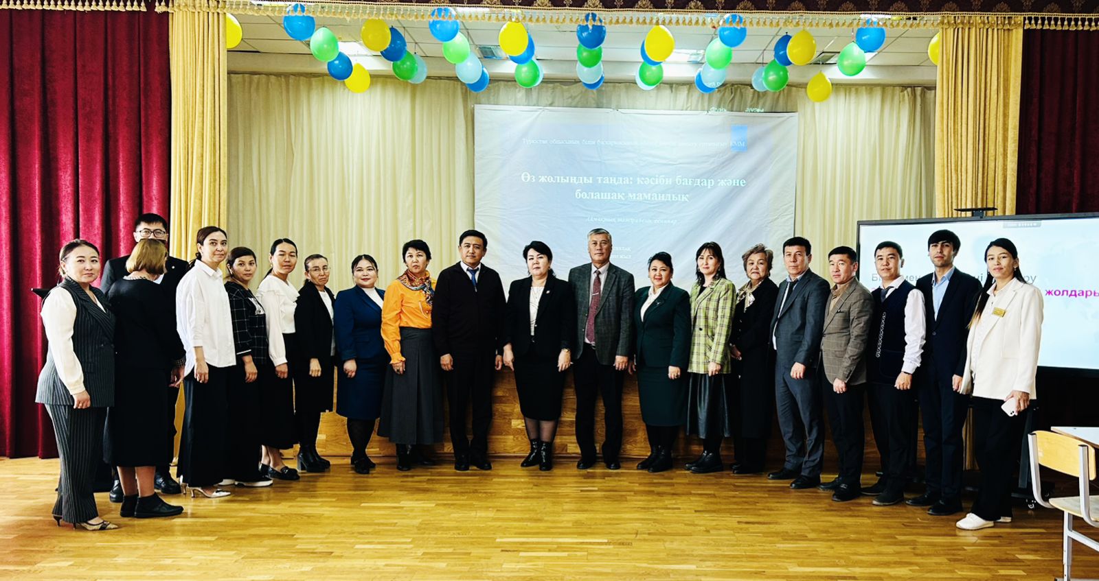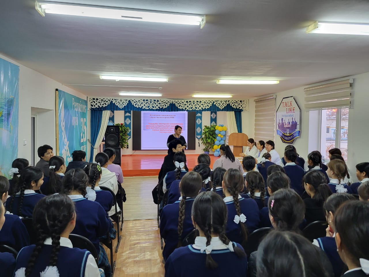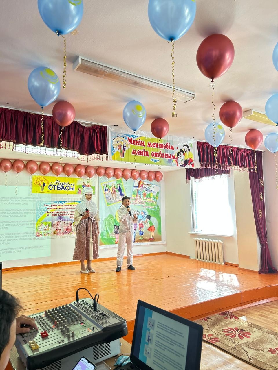 Тәрбие ісі жөніндегі орынбасар Нурмаганбетов Нұрлыбек Ахметжанұлы мектеп оқушыларын жаңа оқу жылымен құттықтады. Әлеуметтік педагог Байбосынова Лаззат Абдиманапқызы, педагог-психолог Рахимова Бибігүл Сапарқызы, математика пәнінің мұалімі Уразбаева Айгүл Назарқұлқызы әлеуметтік қолдауды қажет ететін отбасыларға демеушілік ұйымдастырып, қайырымдылық жасап, мектепке қажетті оқу құралдарымен кеңсе заттарын оқушыларға табыстады.