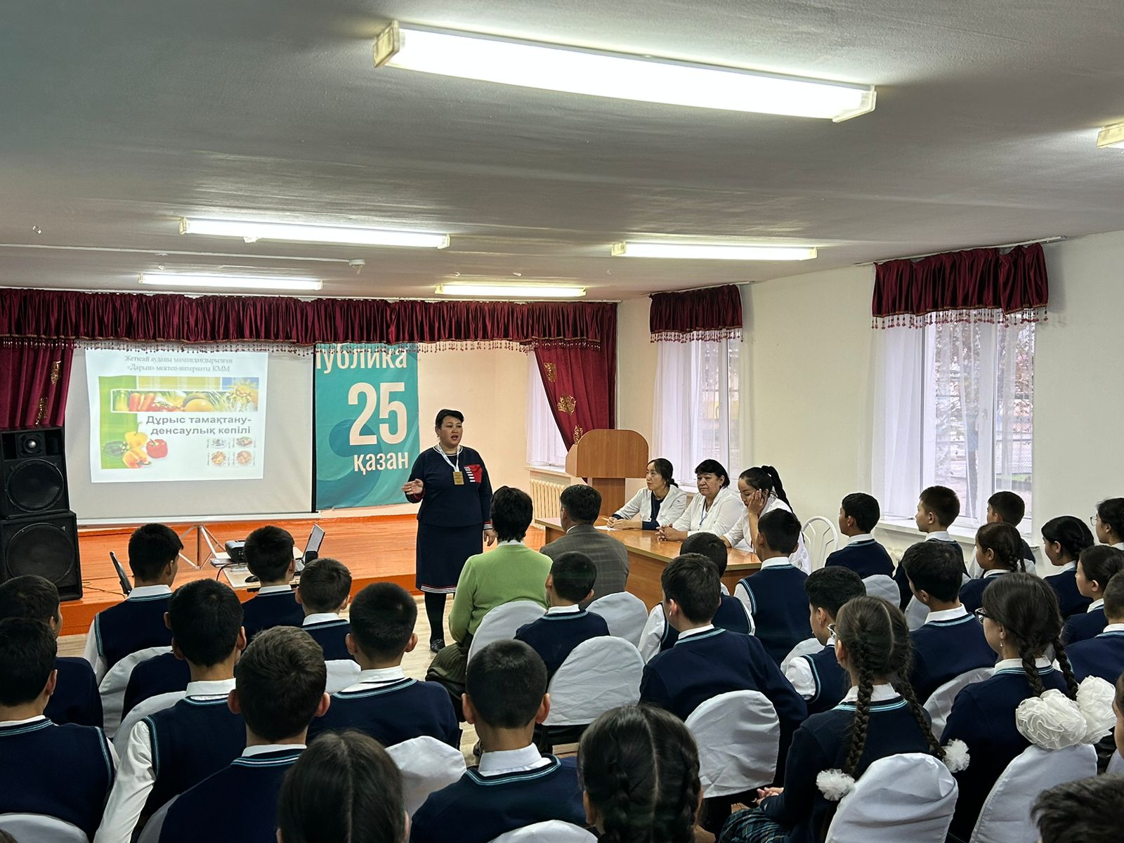 Оқушылармен өтілген іс-шарада «Денсаулық адам өмірінің негізі - дұрыс тамақтану» тақырыбында дәріс оқылды.