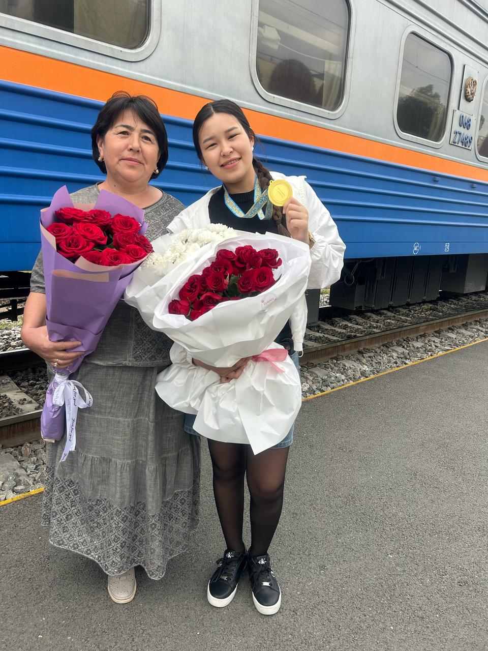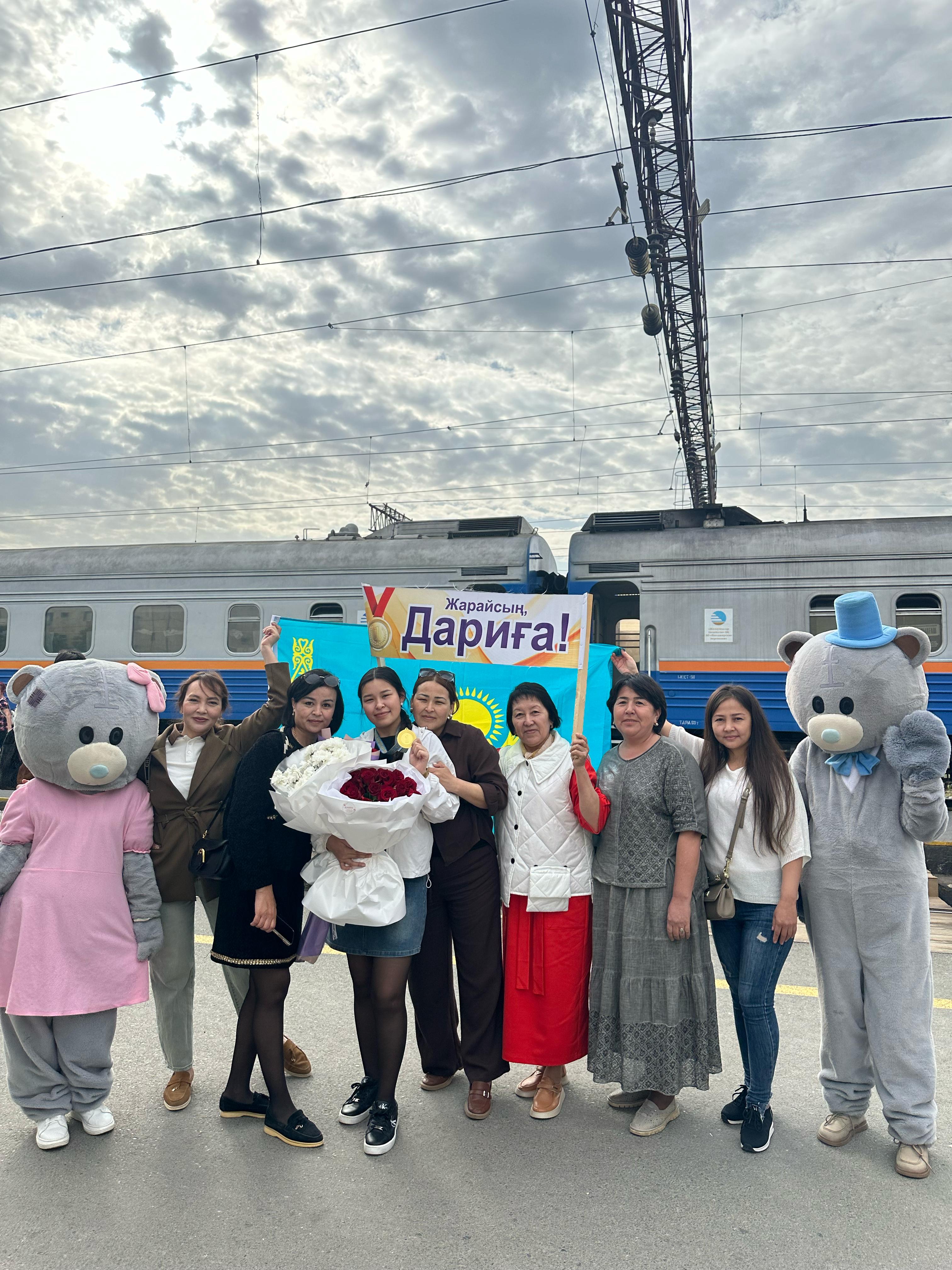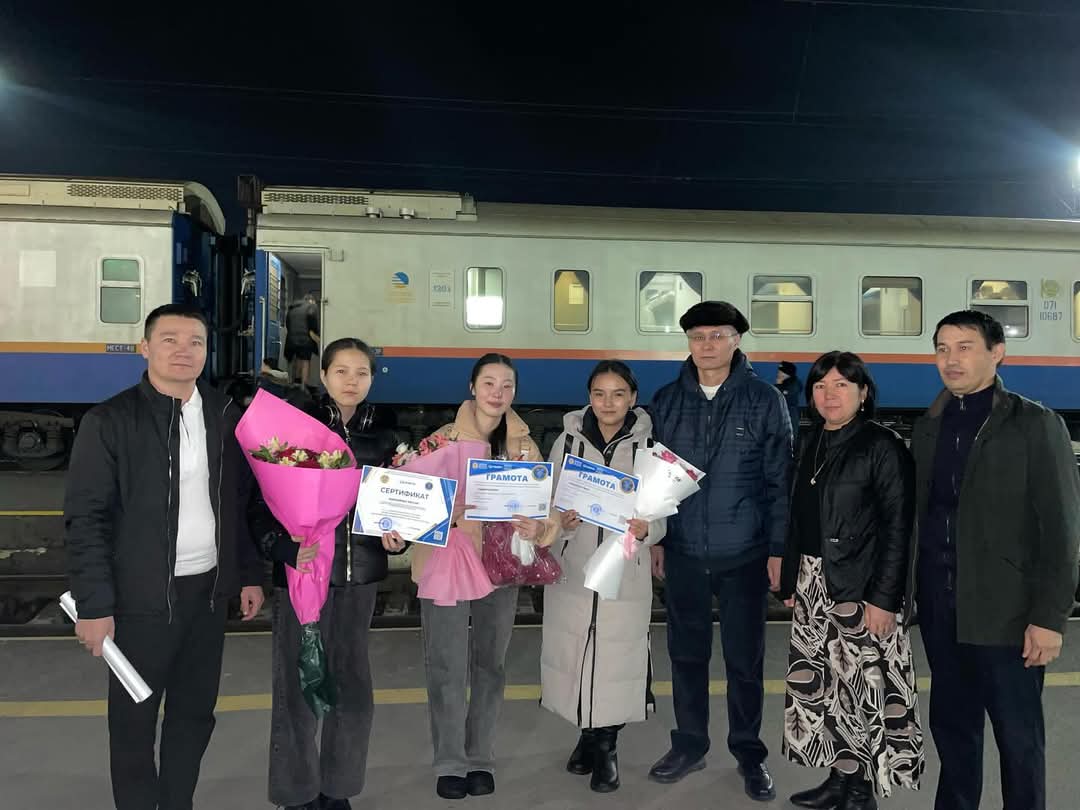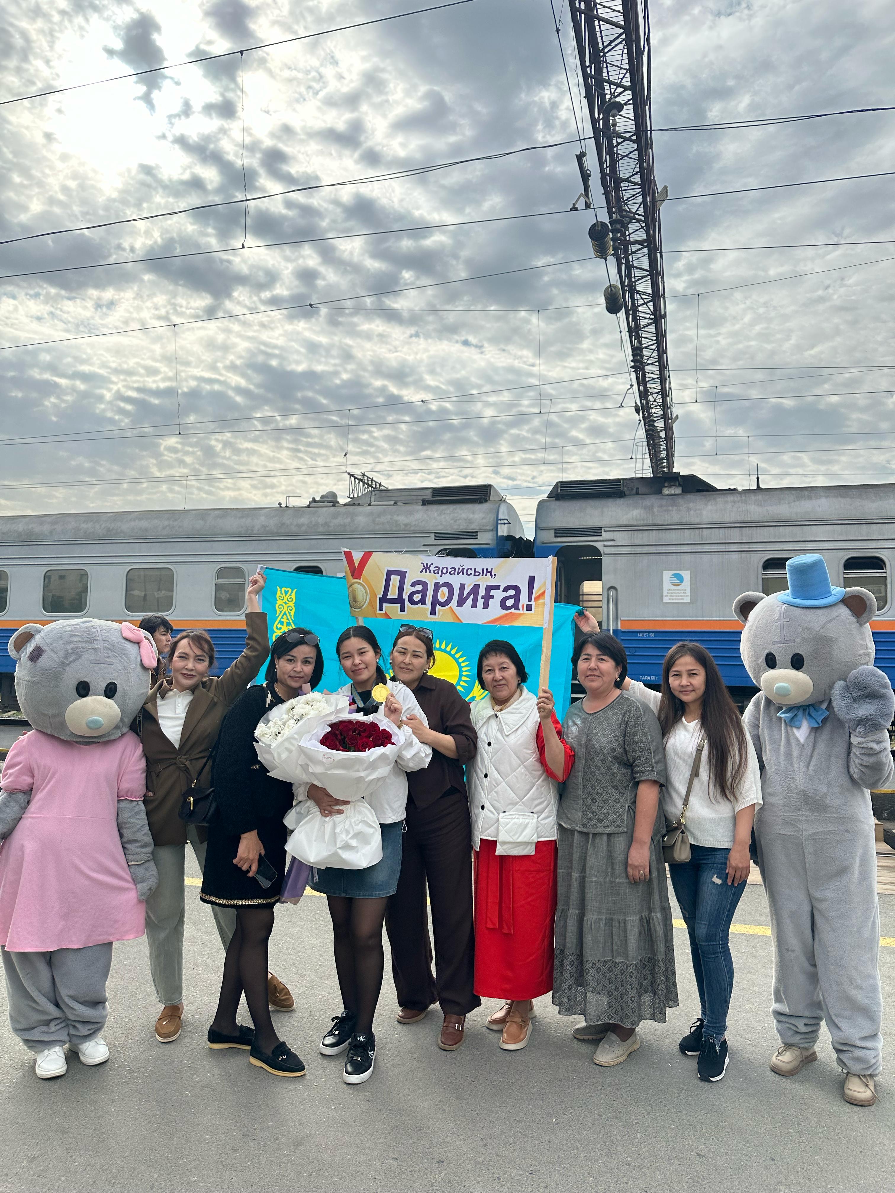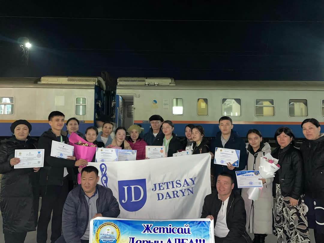 Шымкент теміржол бекетінде Ақтөбеде өткен жалпы білім беретін пәндер бойынша жаратылыстану-математикалық бағыттағы ғылыми жоба конкурсының республикалық кезеңінің жеңімпаздарын өзім бастап, сонымен қатар жетекшілері Жусипханов Ақжол, Алданазарова Мадина және бір топ ата-аналар қуанышпен қарсы алды. Жетісай ауданының мамандандырылған “Дарын” мектеп-интернатынан республикалық ғылым бәйгесіне 7 оқушымыз қатысып,5 оқушы жеңіспен оралды.Олар: