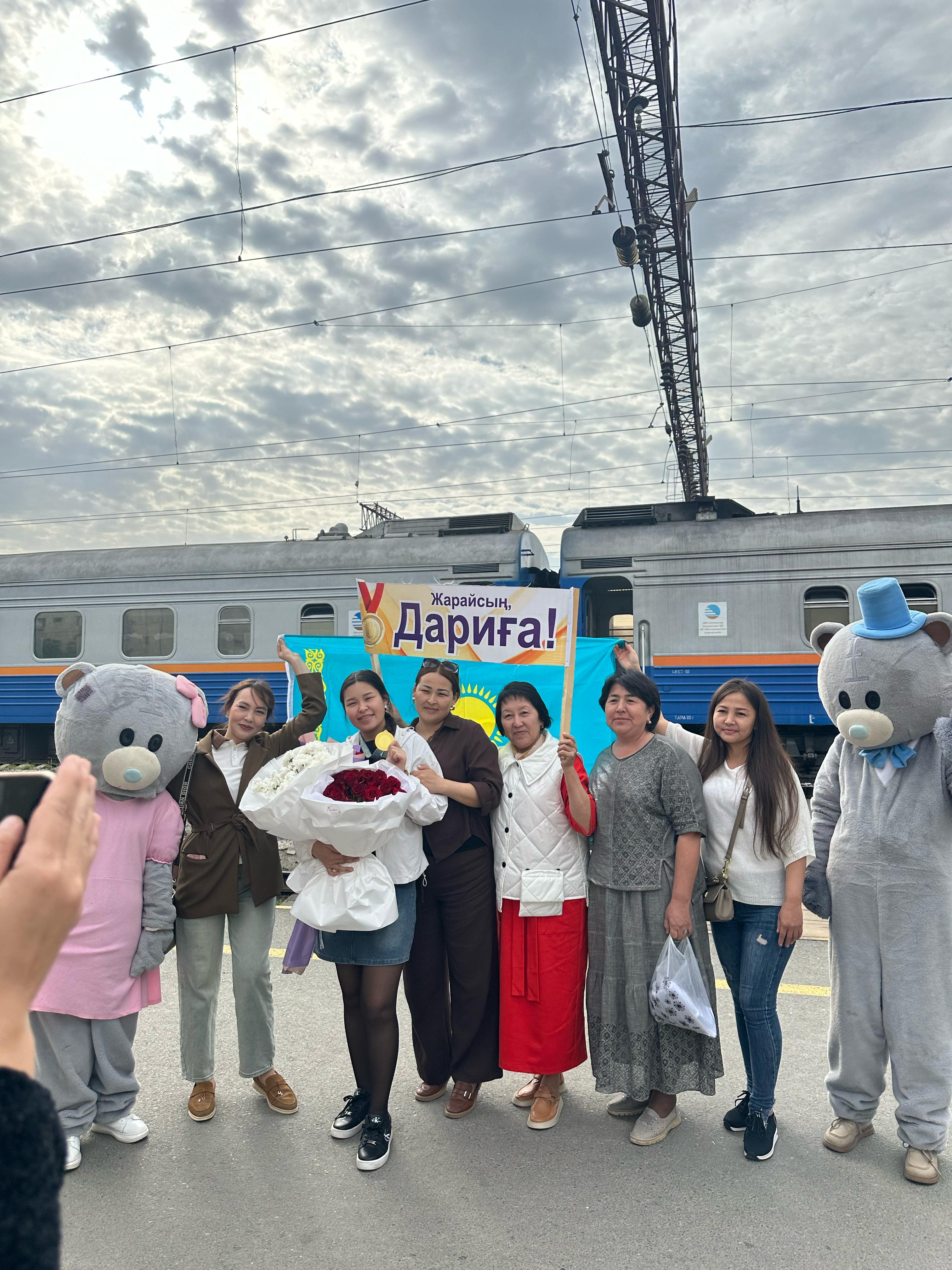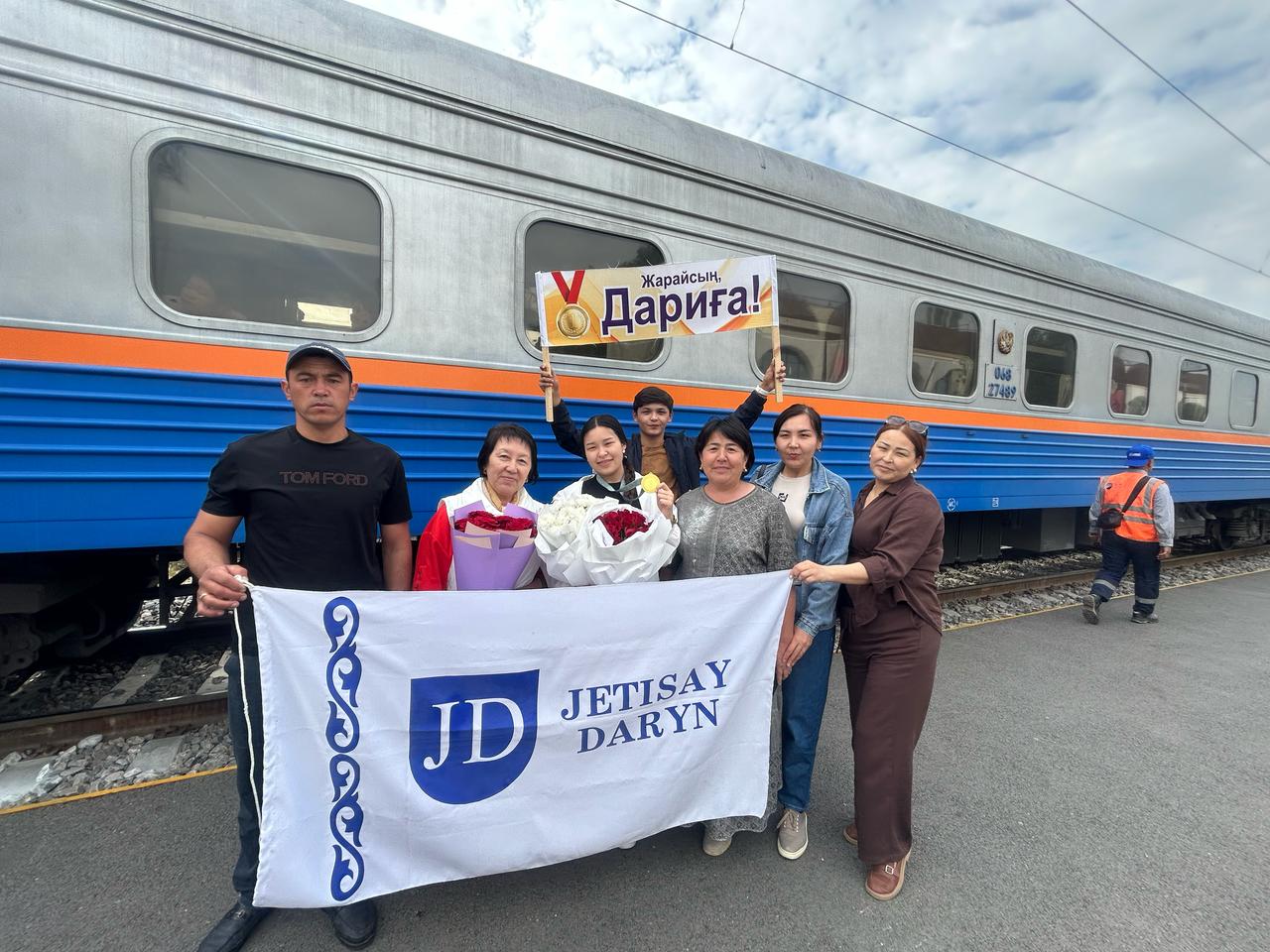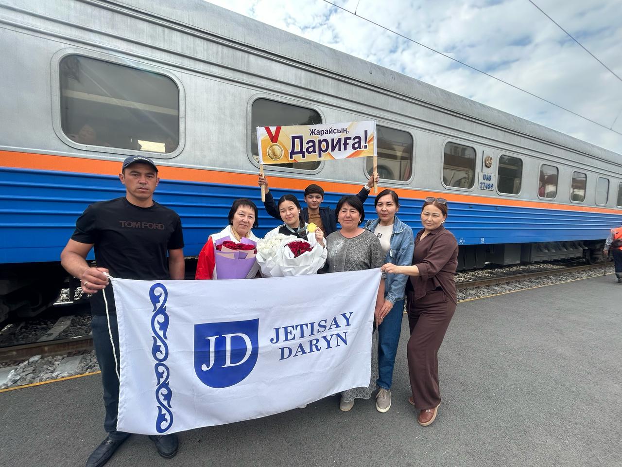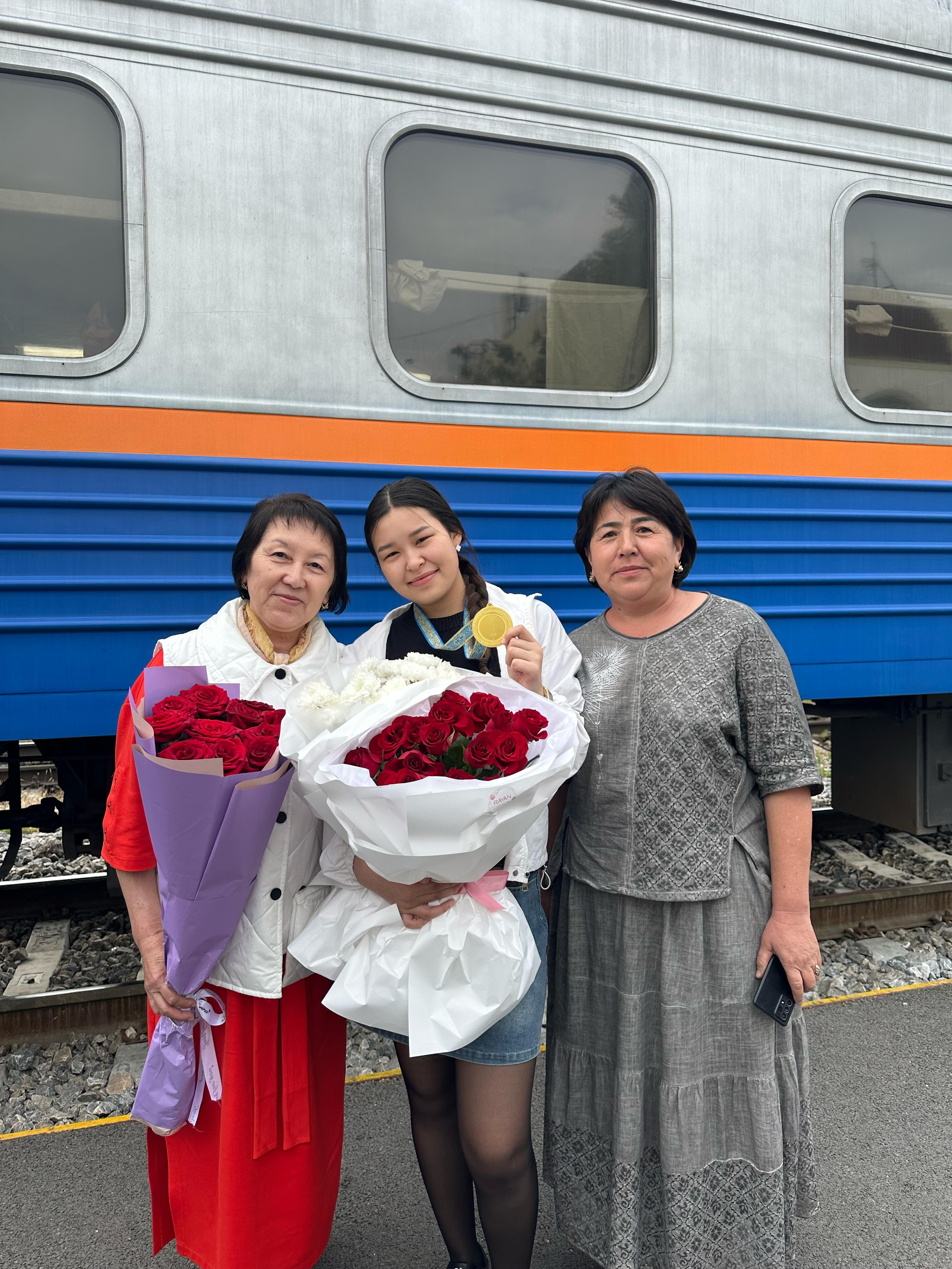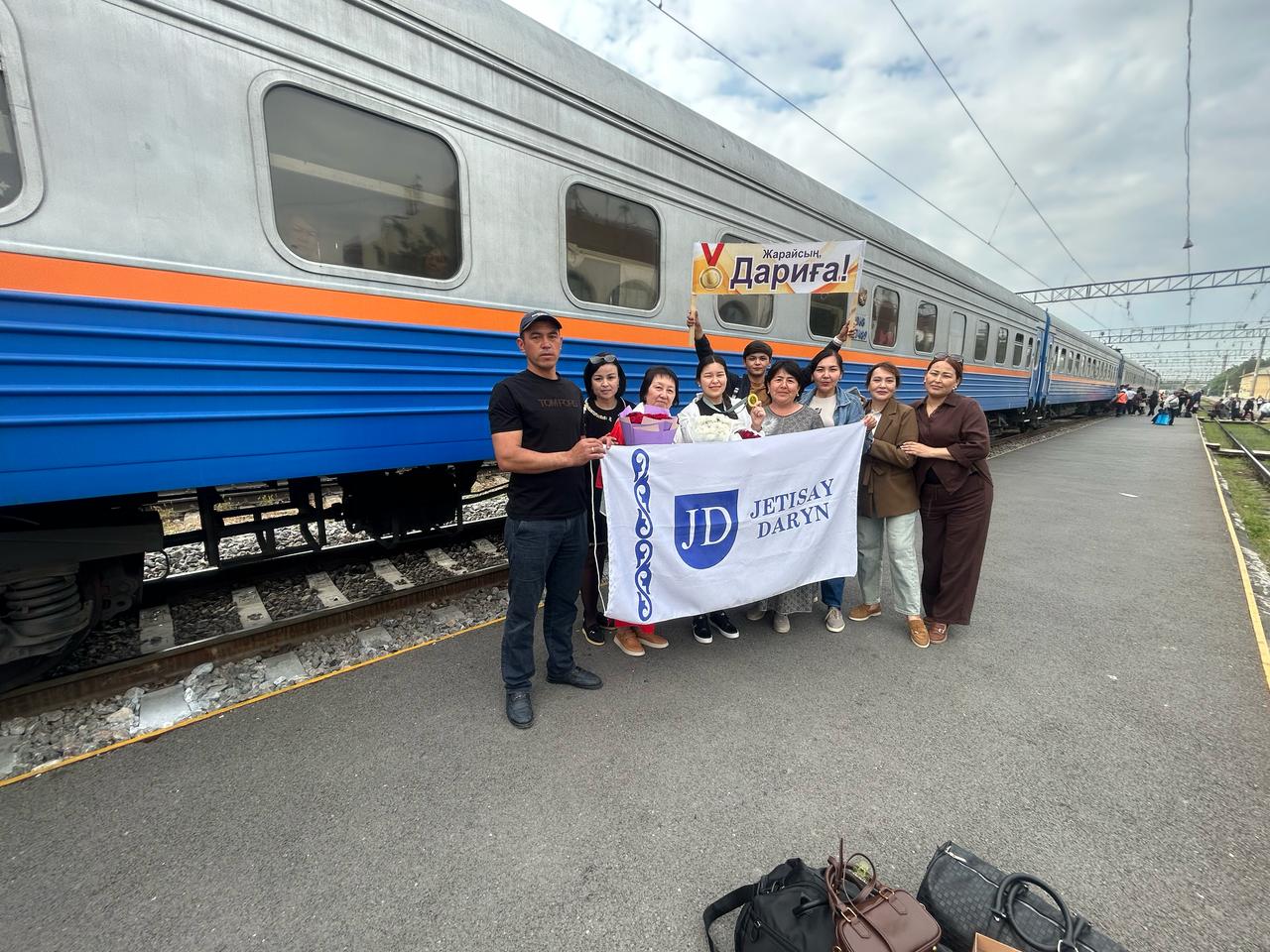 Шымкент теміржол бекетінде Ақтөбеде өткен жалпы білім беретін пәндер бойынша жаратылыстану-математикалық бағыттағы ғылыми жоба конкурсының республикалық кезеңінің жеңімпаздарын өзім бастап, сонымен қатар жетекшілері Жусипханов Ақжол, Алданазарова Мадина және бір топ ата-аналар қуанышпен қарсы алды. Жетісай ауданының мамандандырылған “Дарын” мектеп-интернатынан республикалық ғылым бәйгесіне 7 оқушымыз қатысып,5 оқушы жеңіспен оралды.Олар: