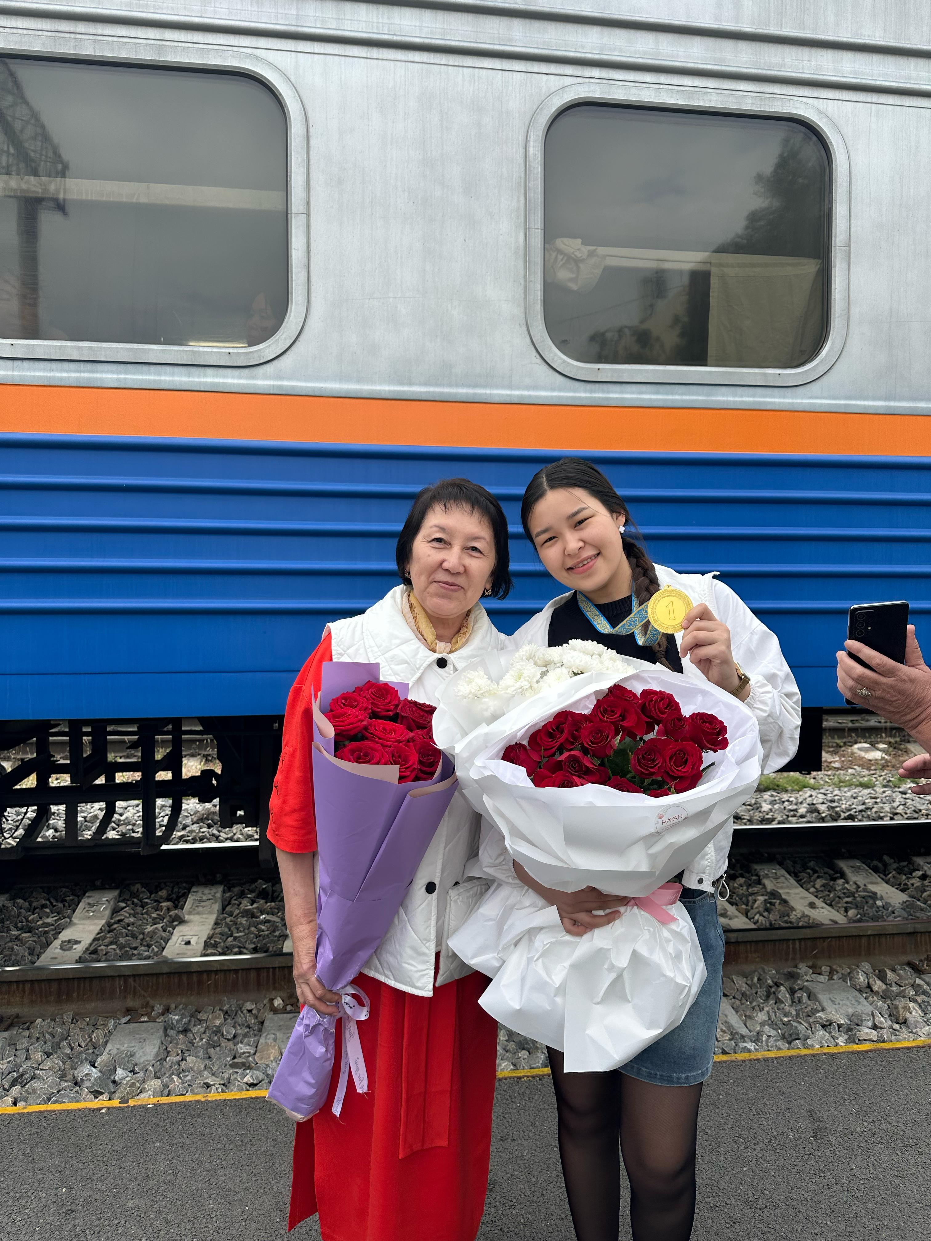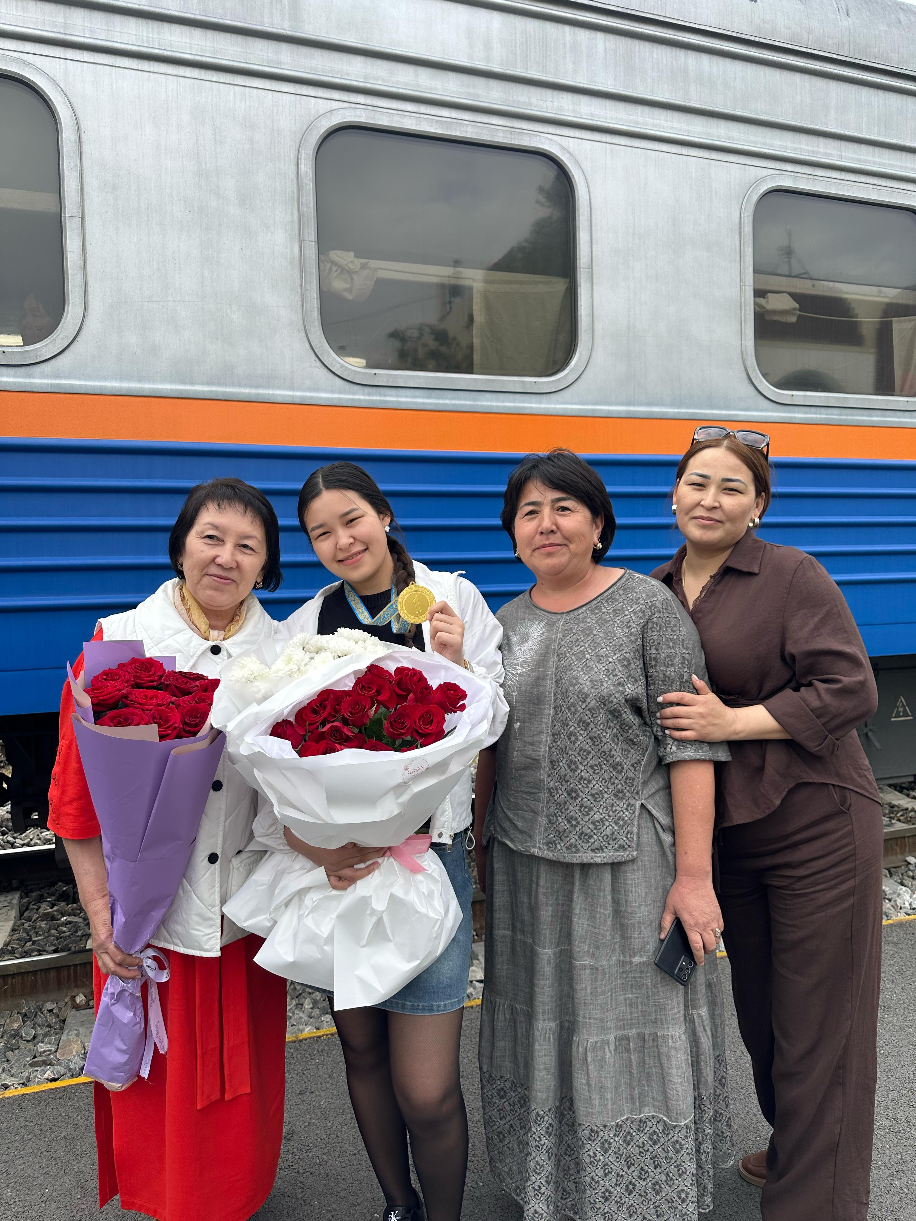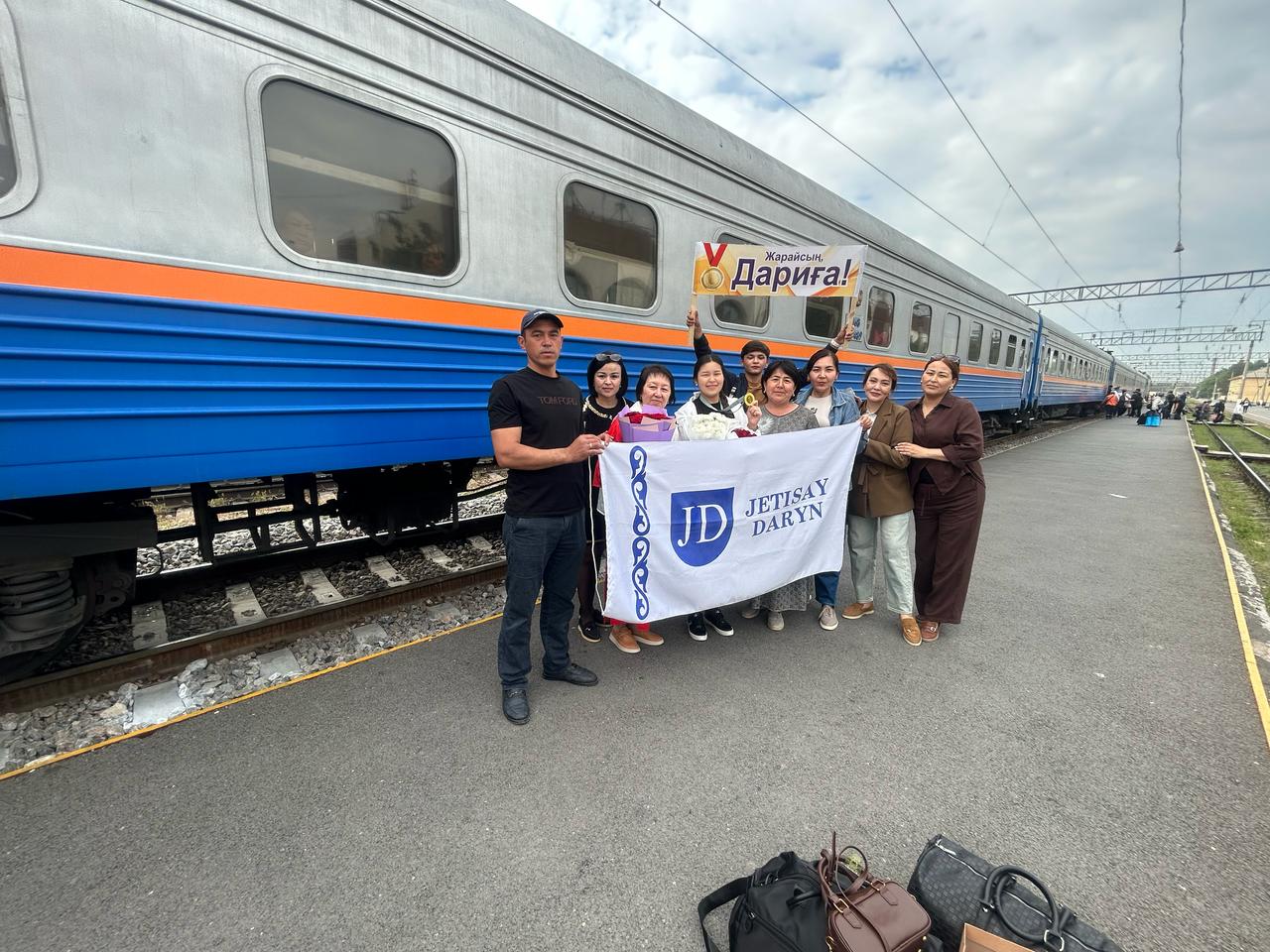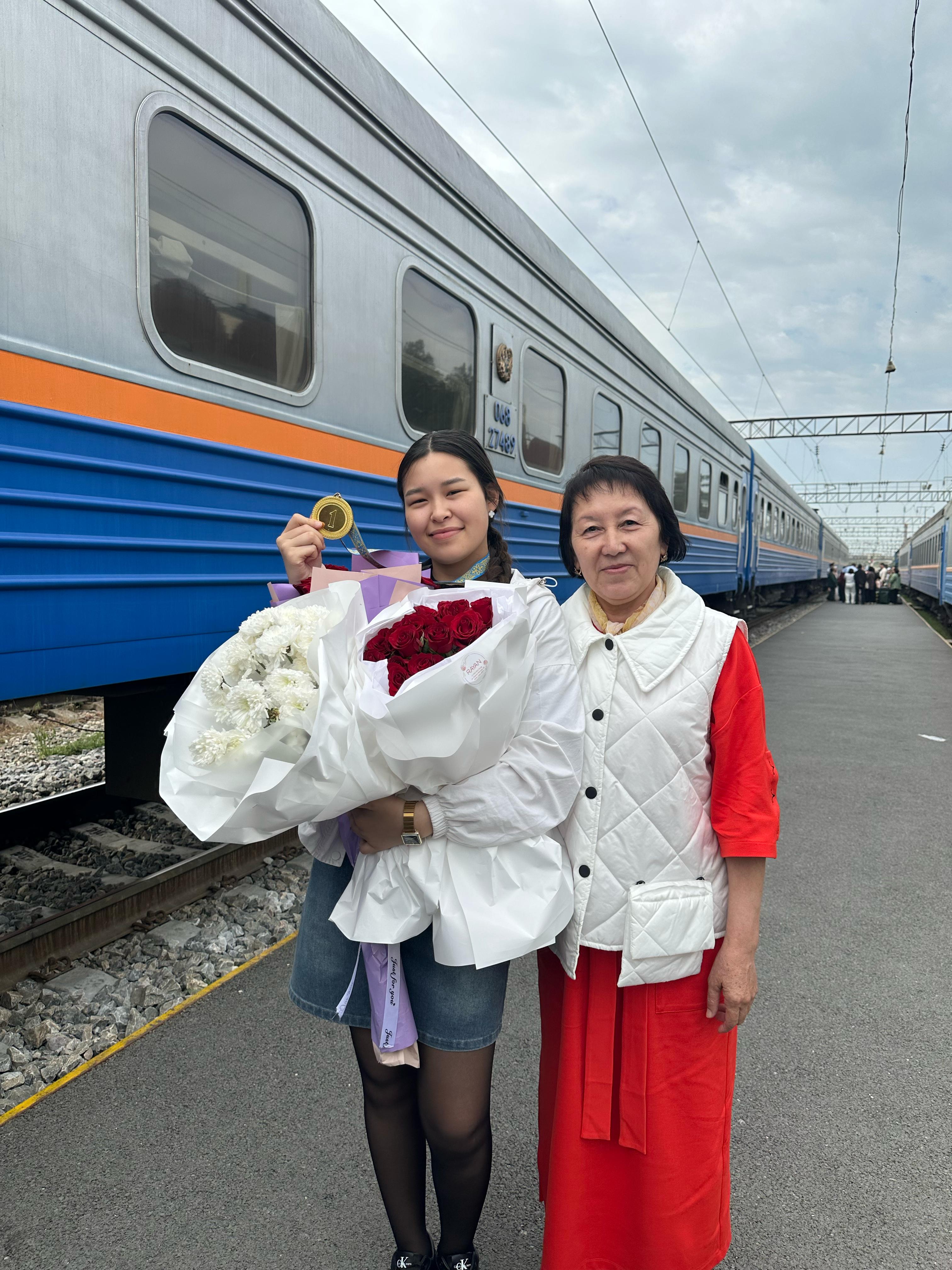 Шымкент теміржол бекетінде Ақтөбеде өткен жалпы білім беретін пәндер бойынша жаратылыстану-математикалық бағыттағы ғылыми жоба конкурсының республикалық кезеңінің жеңімпаздарын өзім бастап, сонымен қатар жетекшілері Жусипханов Ақжол, Алданазарова Мадина және бір топ ата-аналар қуанышпен қарсы алды. Жетісай ауданының мамандандырылған “Дарын” мектеп-интернатынан республикалық ғылым бәйгесіне 7 оқушымыз қатысып,5 оқушы жеңіспен оралды.Олар: