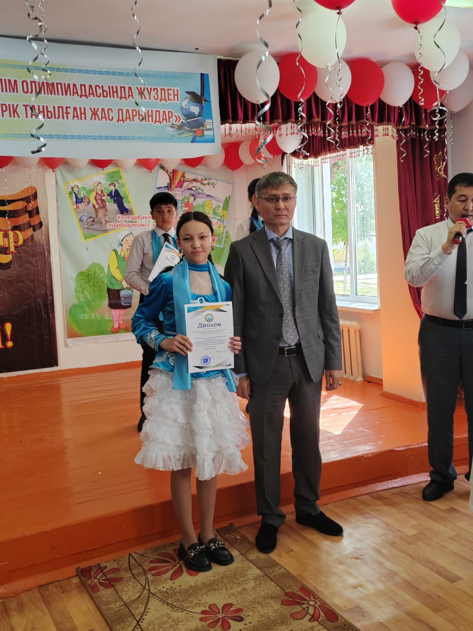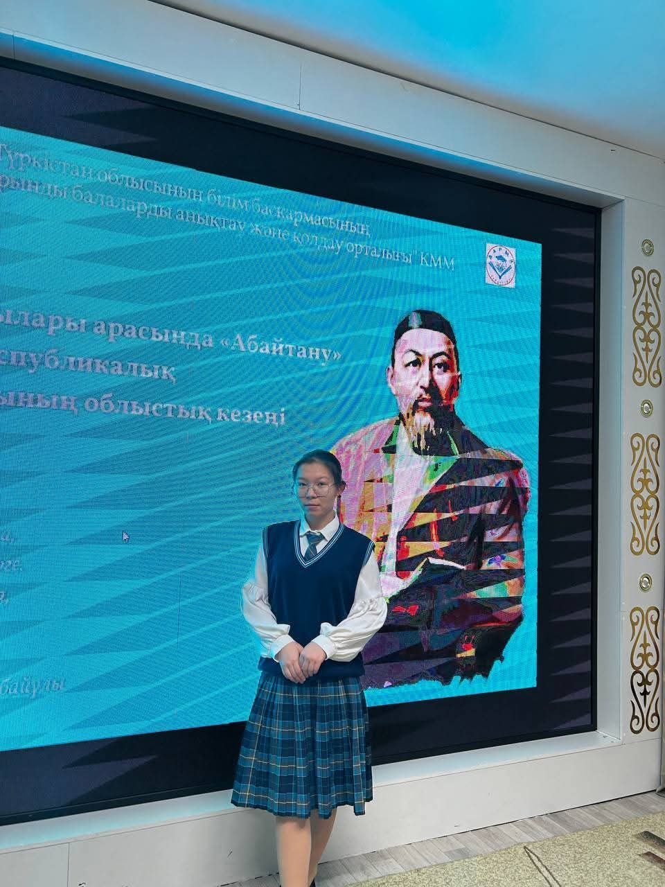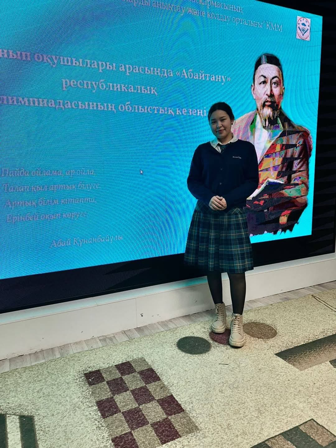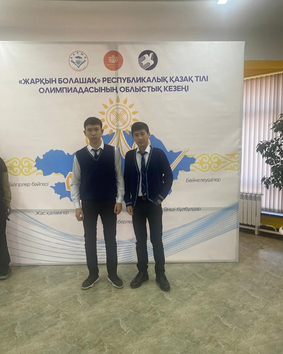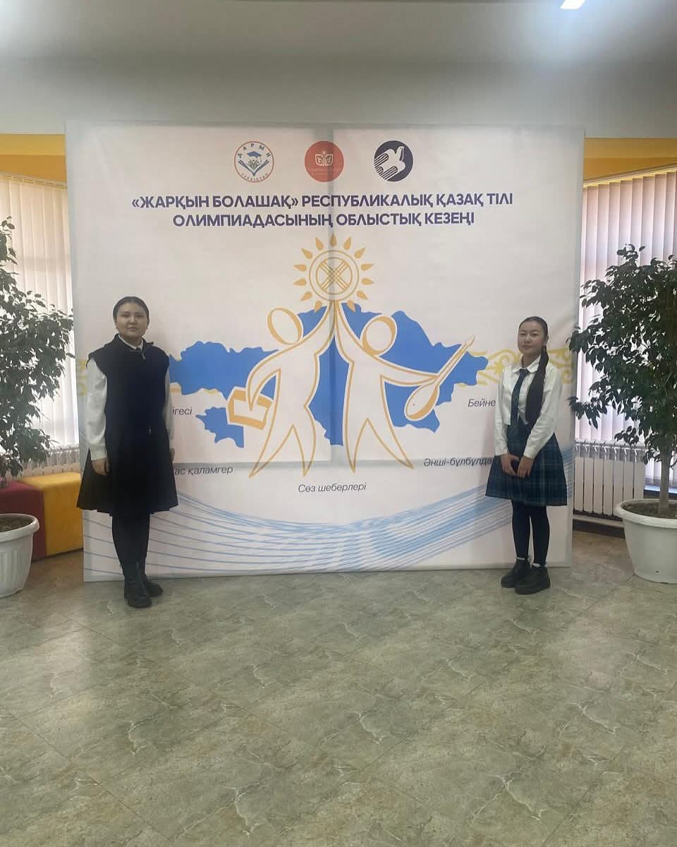 2025 жыл 25 ақпан күні Түркістан қаласында 9 - 11 - сынып оқушыларына арналған республикалық “Абайтану” олимпиадасының облыстық кезеңі болып өтті. Осы олимпиадаға мектебіміздің атынан қатысқан оқушыларымыз- Оңғарбай Дариға 1 - орын иегері атанса, Худайберген Назерке 3 - орын иегері атанып, мектеп мерейін үстем етті. Жарайсыңдар, жеңіс құтты болсын дейміз!