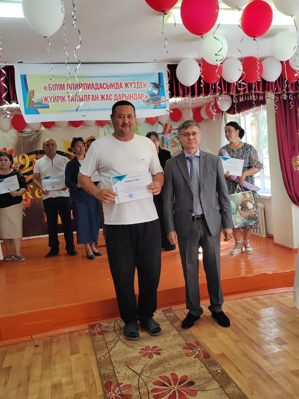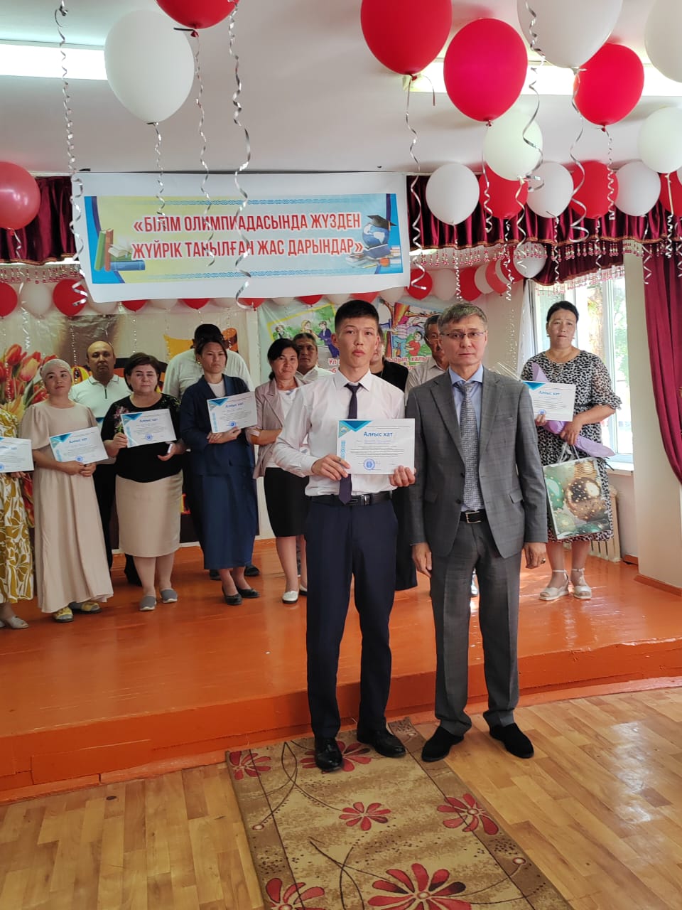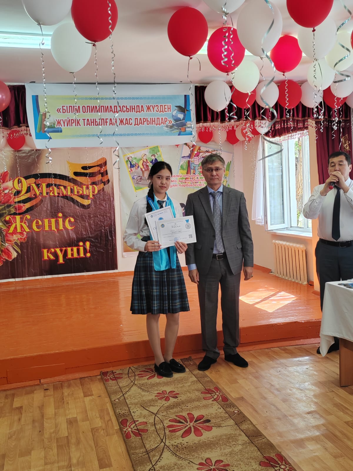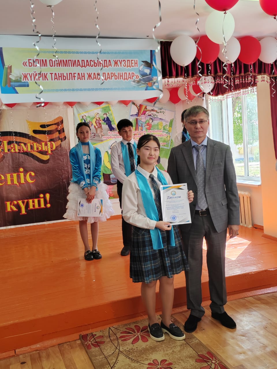 2025 жыл 25 ақпан күні Түркістан қаласында 9 - 11 - сынып оқушыларына арналған республикалық “Абайтану” олимпиадасының облыстық кезеңі болып өтті. Осы олимпиадаға мектебіміздің атынан қатысқан оқушыларымыз- Оңғарбай Дариға 1 - орын иегері атанса, Худайберген Назерке 3 - орын иегері атанып, мектеп мерейін үстем етті. Жарайсыңдар, жеңіс құтты болсын дейміз!