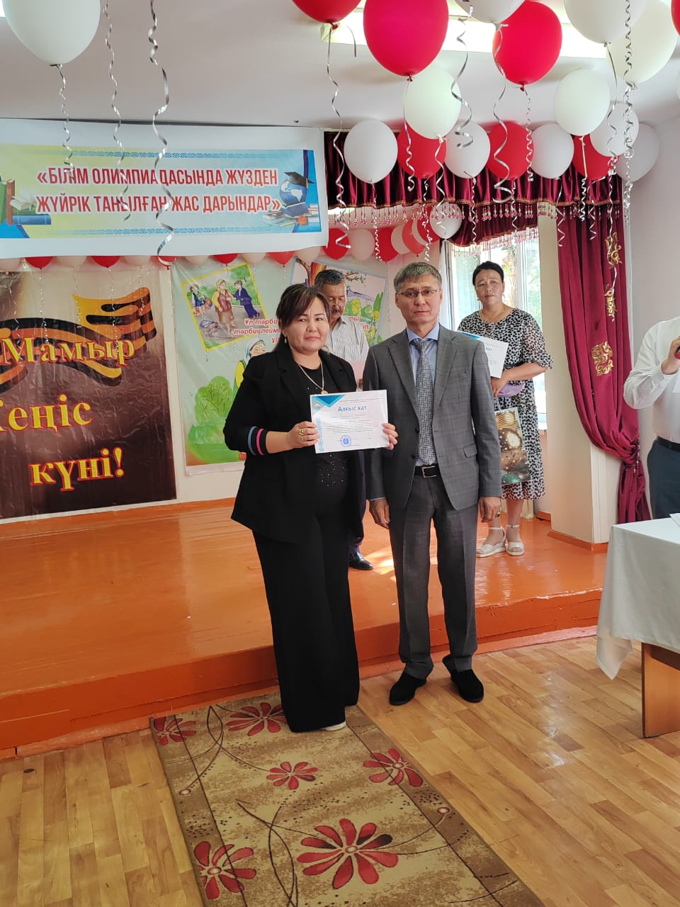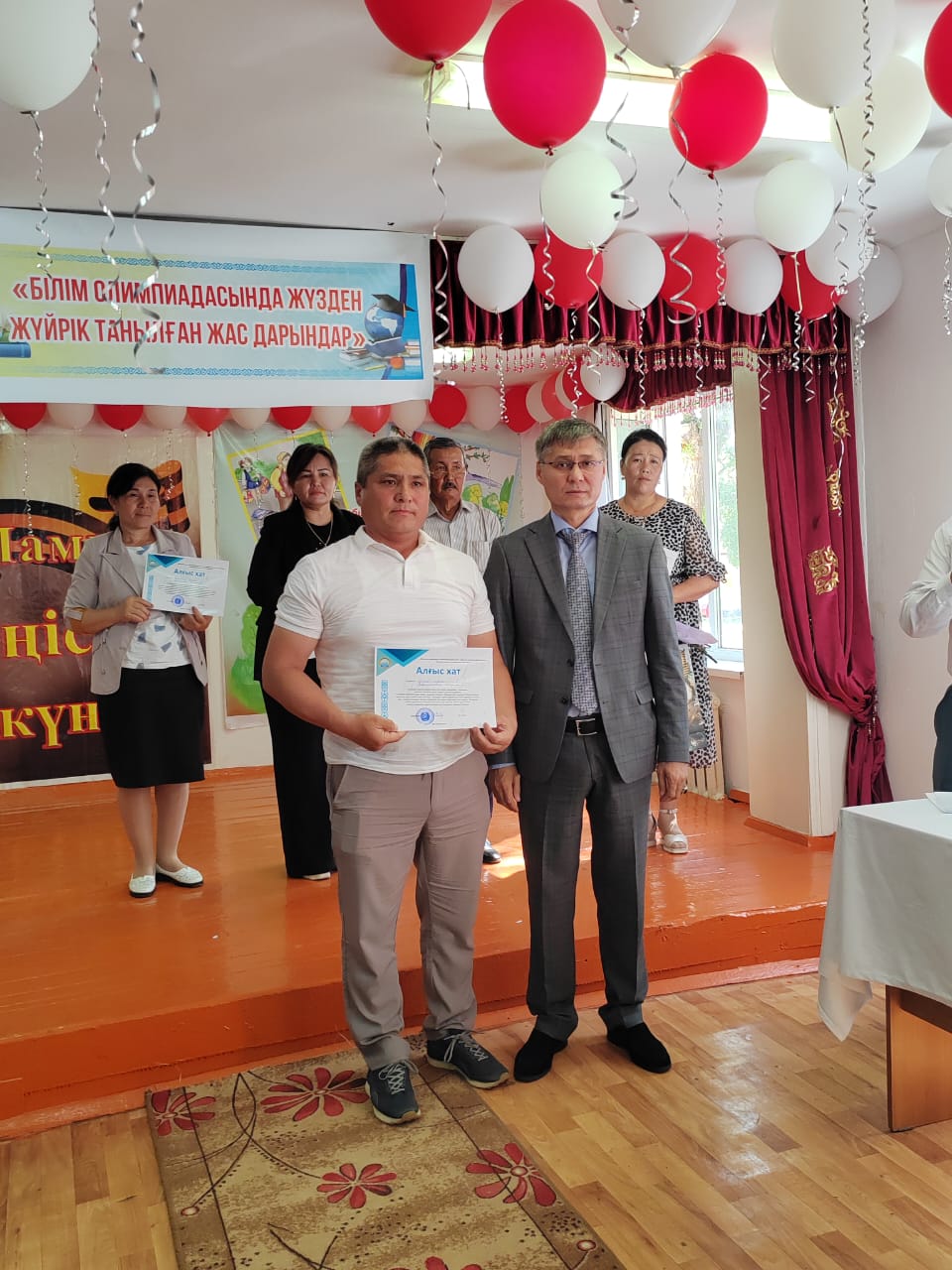 «Мектептің жүрегі», «Бала жанының бағбаны»... . Иә, бұл мектеп мұғалімі – ұстазға арналған теңеулер. Мұндай мақтауларды жалғастырсақ, даналық сөздер тізбегі шексіздікке ұласады. Бала бойына ата-анадан кейінгі ақыл-ой, адамгершілік, әдептілік, ар-ұят, ұлттық сана-сезімді сіңіруші адам – мұғалім. Яғни, өз ісіне берілген, кез келген жаңалықты жатсынбай қабылдайтын ұстаздардың жөні де, жолы да алабөтен бөлек. Оқушыларымыздың таудай жетістікке жету жолында аянбай тер төккен ұстаздарымызға мың алғыс айтамыз! Сондай- ақ бала дарынын қолдап, мектеппен тонның ішкі бауындай араласып, тілекші болған жеңімпаз шәкірттеріміздің ата-аналарына да алғыс білдіреміз.