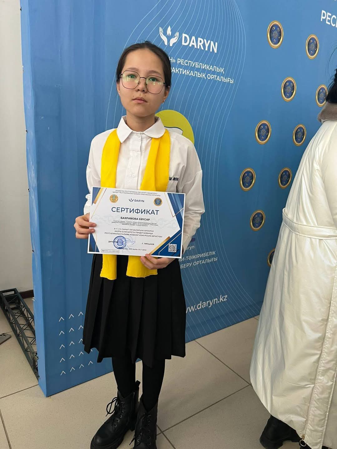 Білім сайысында мектебі мен ұстаздарының артқан сенім биігінен көріне білген дарынды оқушыларымызды мақтан тұтамыз! Жарайсыздар, жас дарындар!