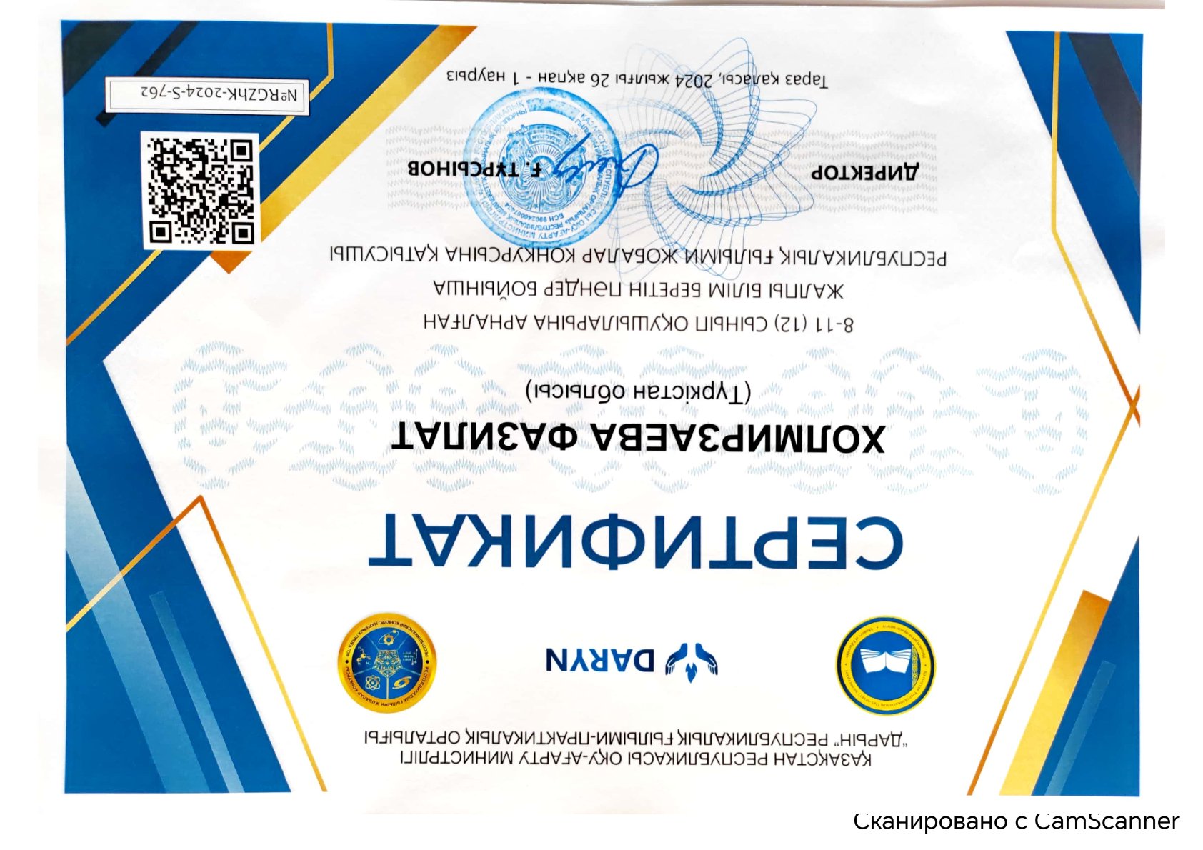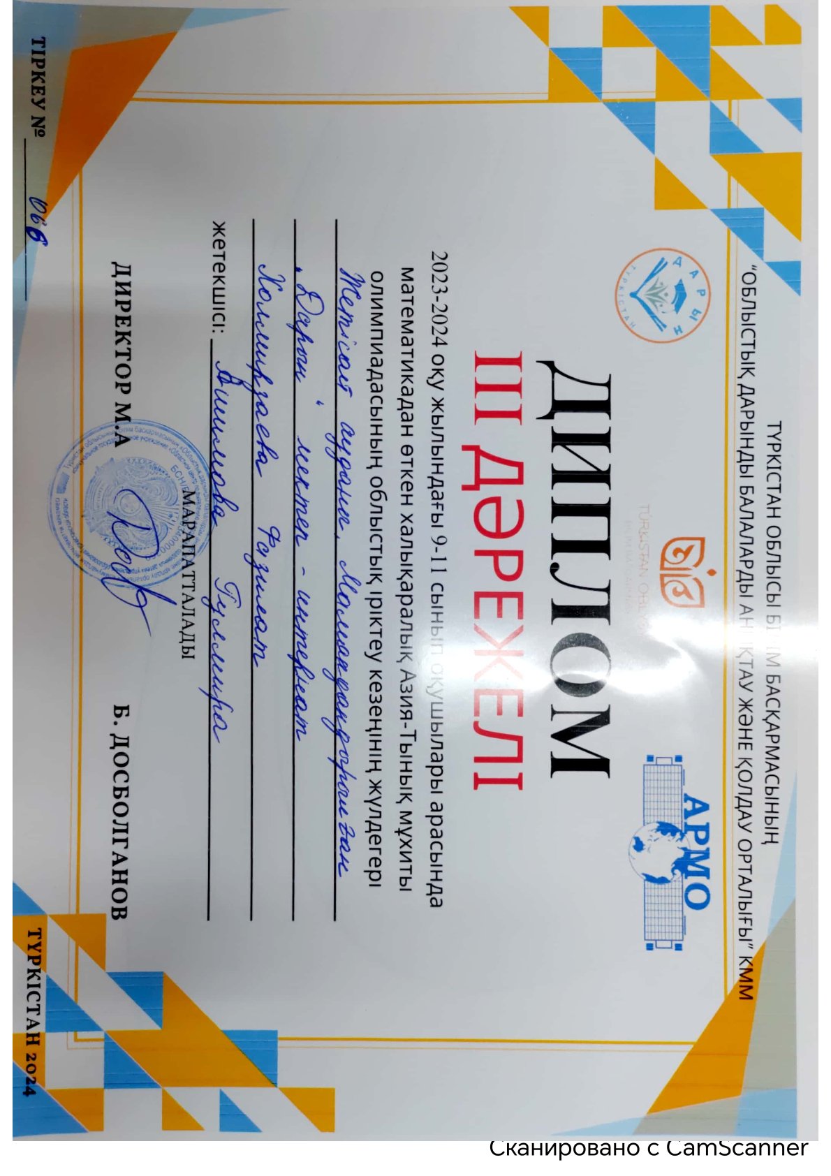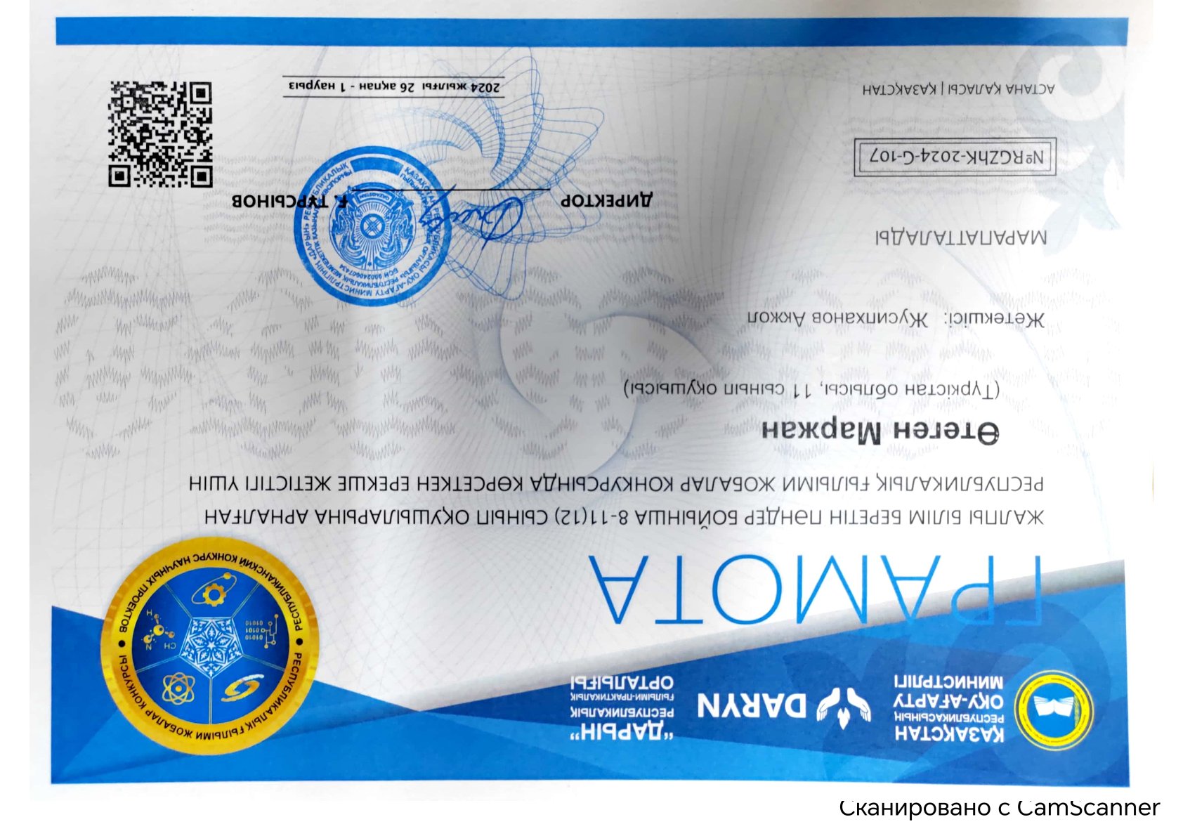 | 2 | Кошкарбай Б Диплом 2 Орын |