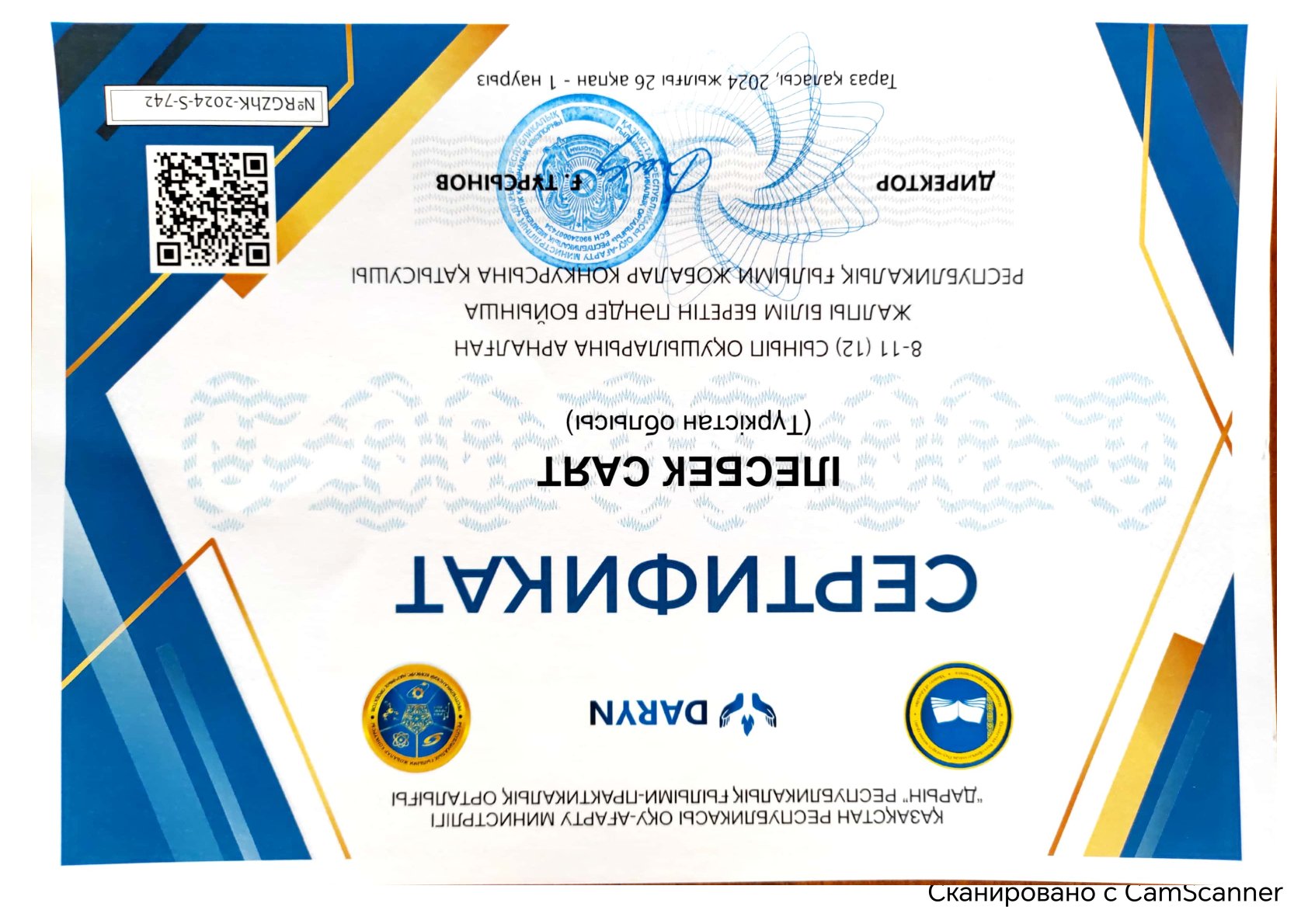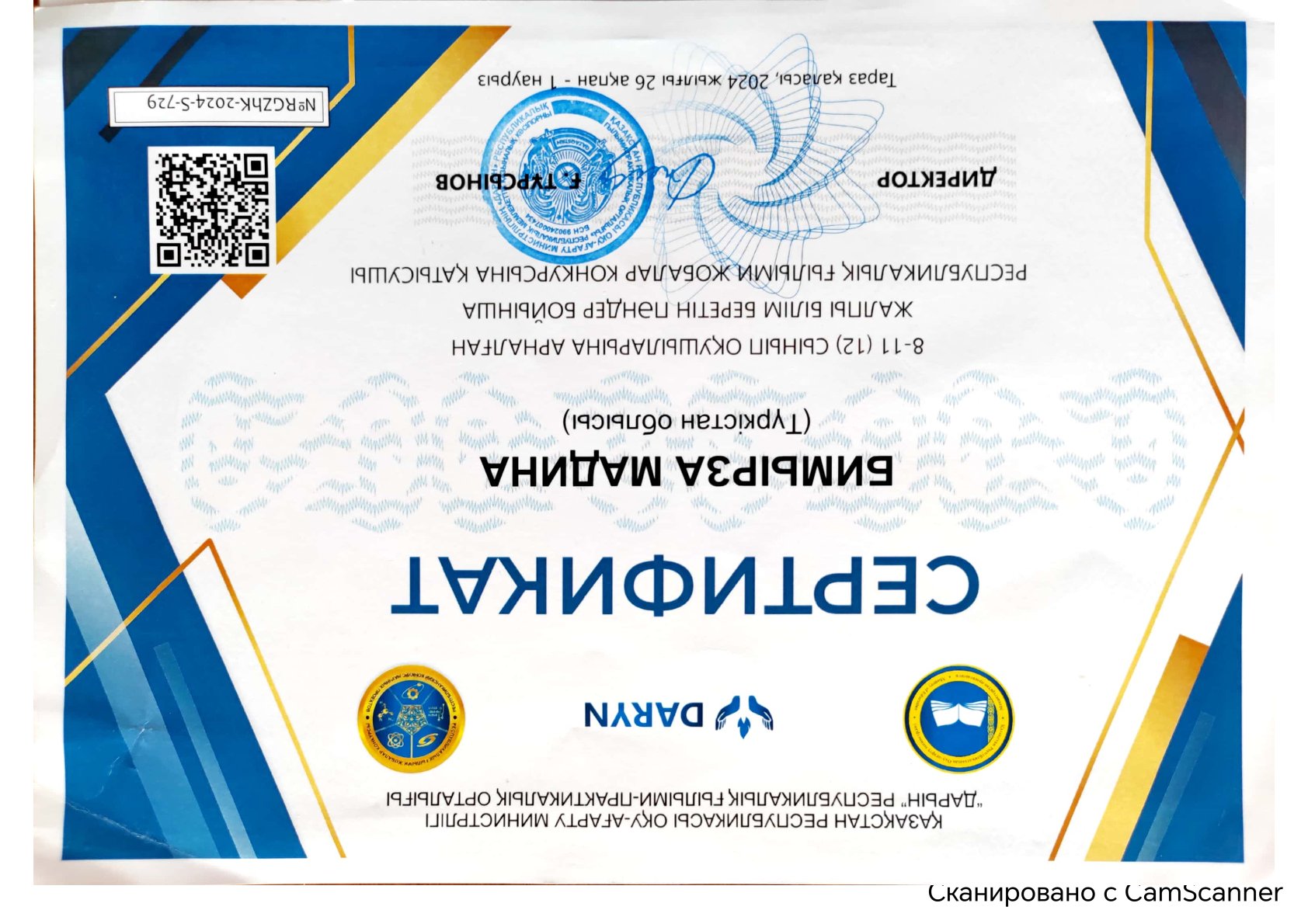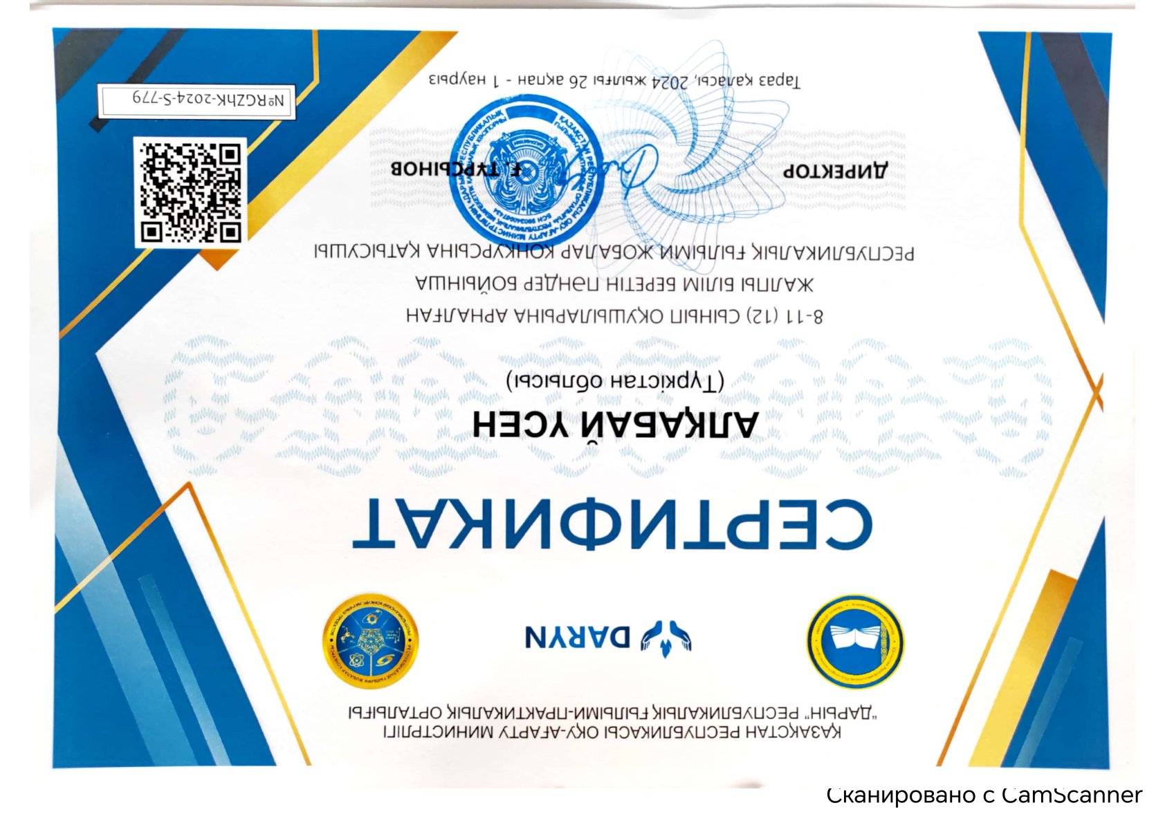 | 2 | Кошкарбай Б Диплом 2 Орын |