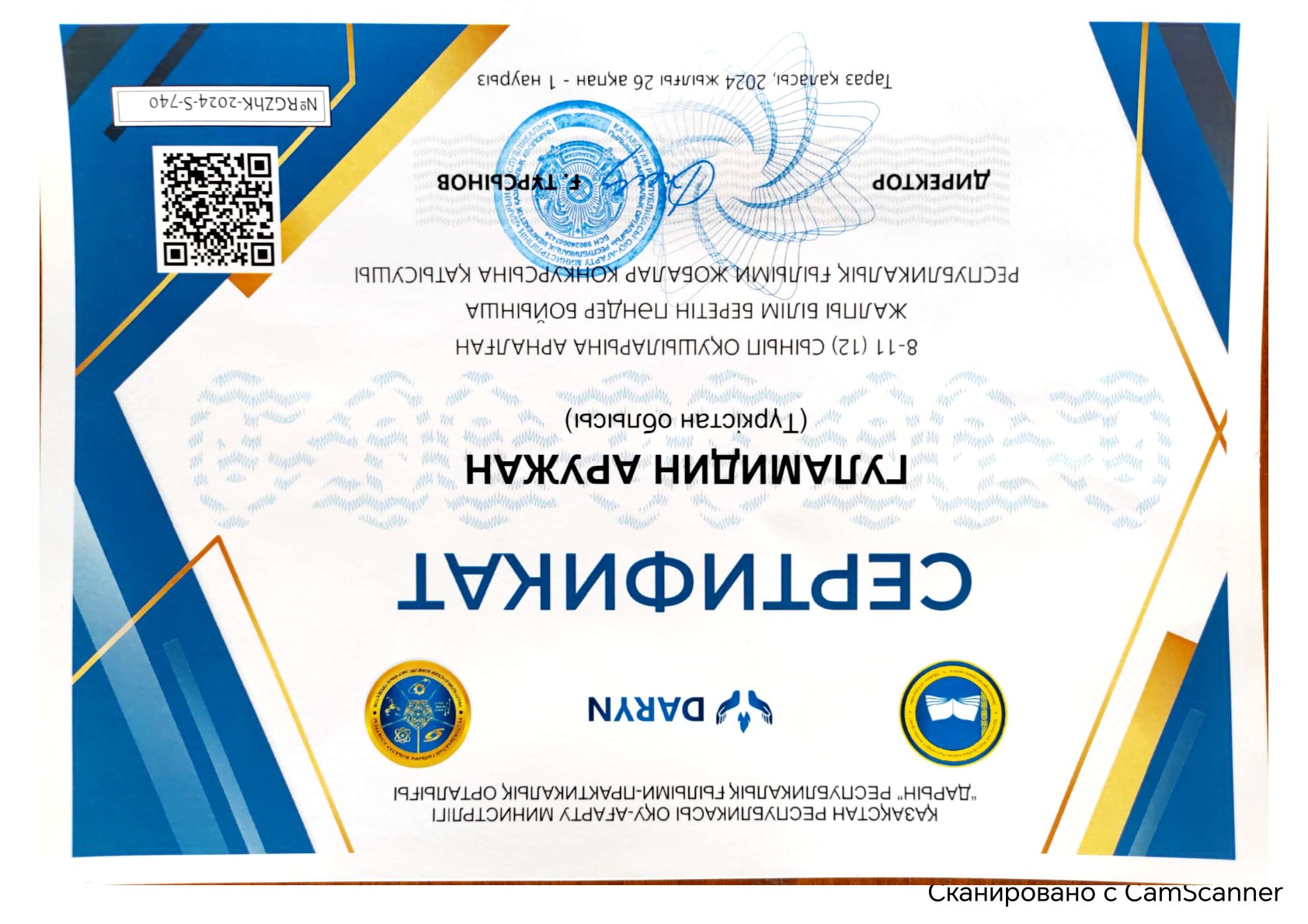 Турмуратова Гульшат ханымға (Заңғар) үлкен алғыс білдіреміз!