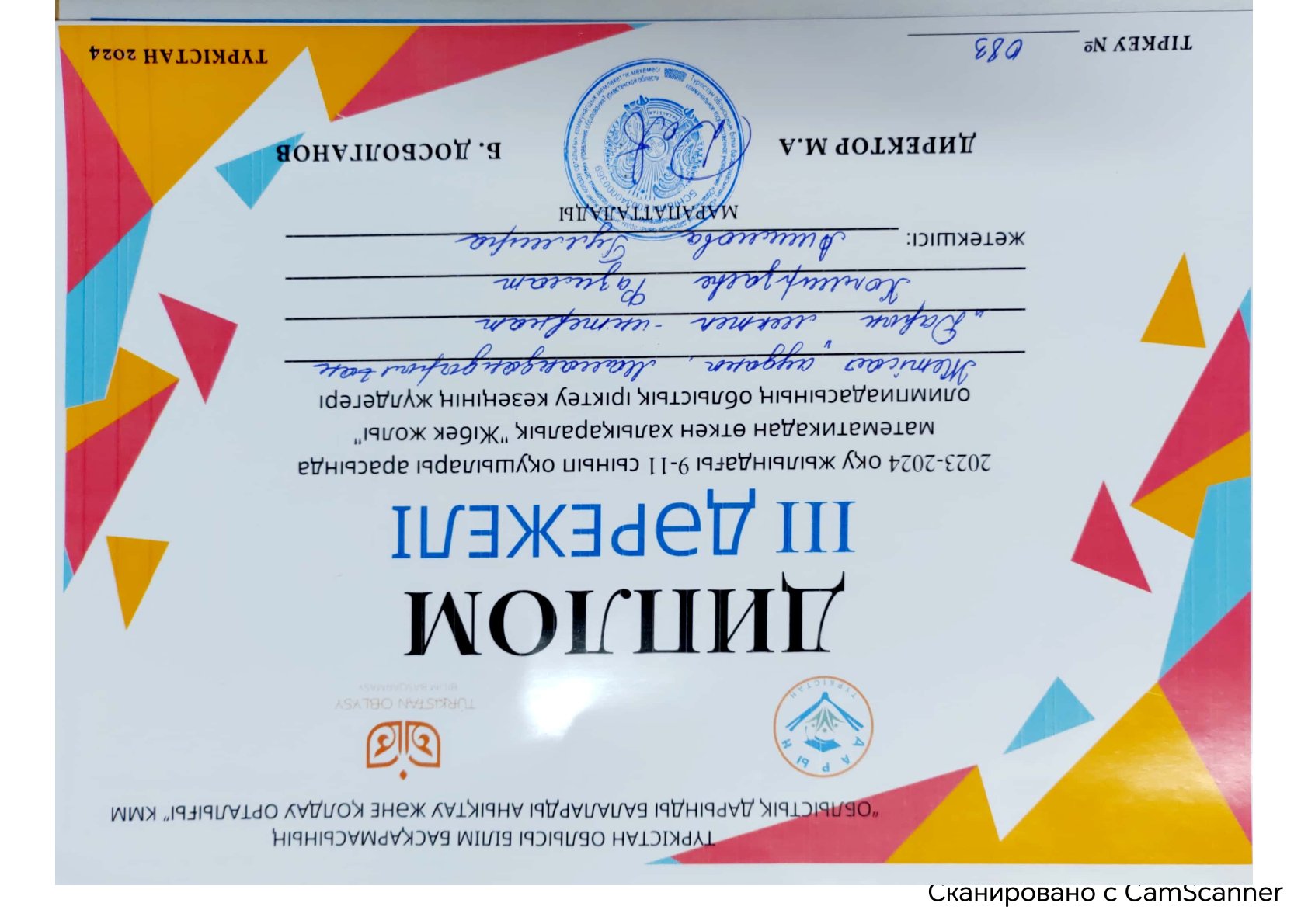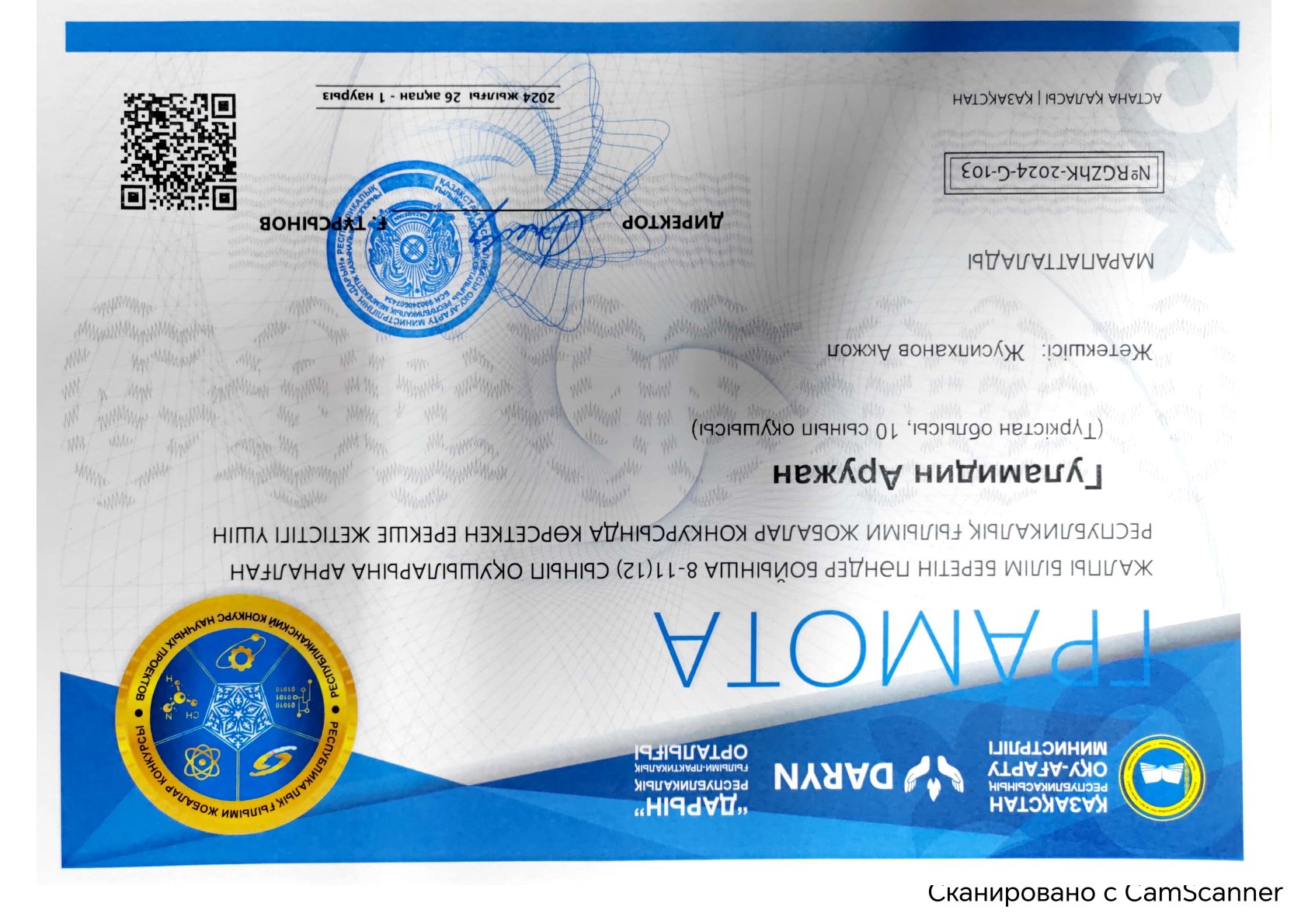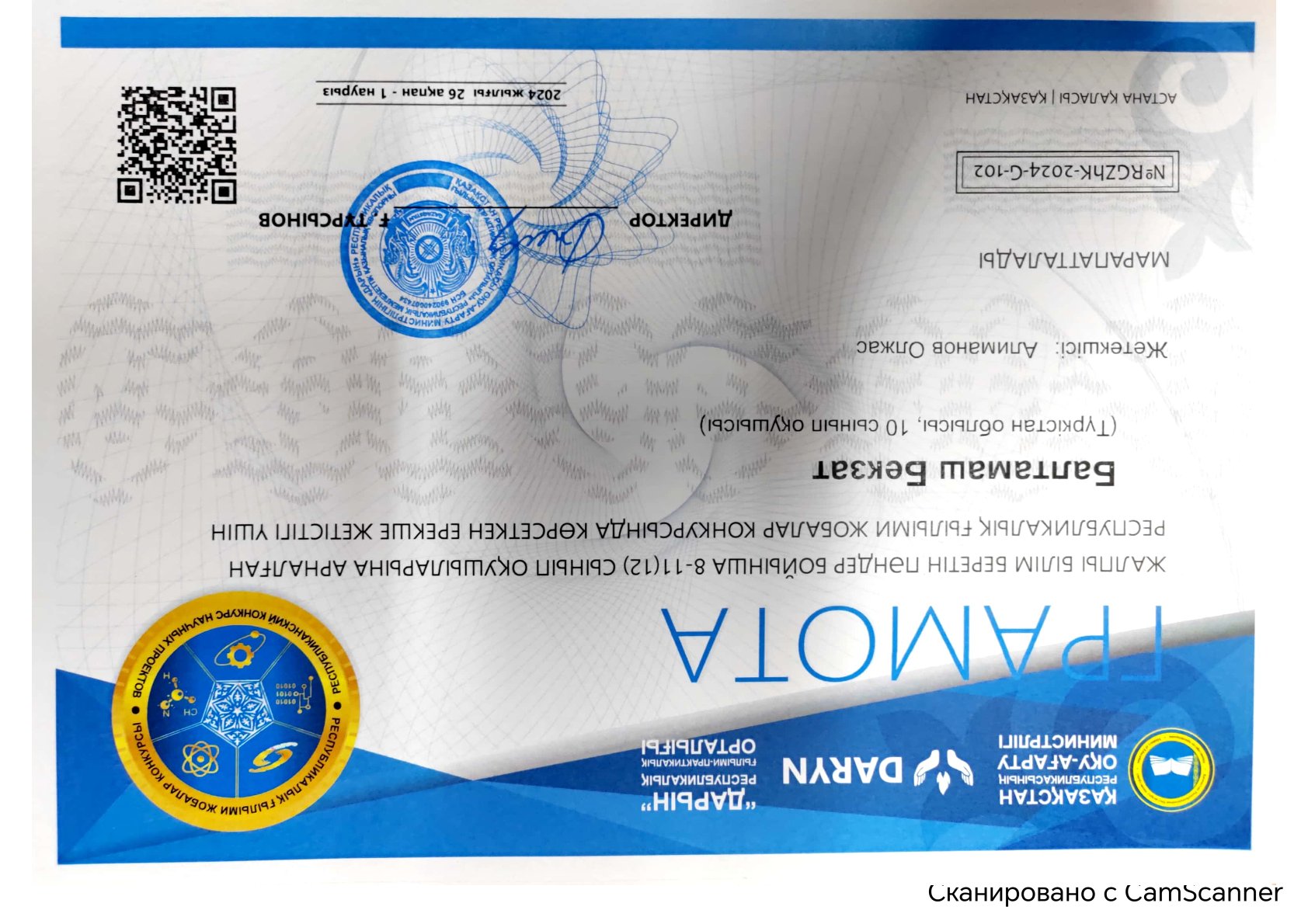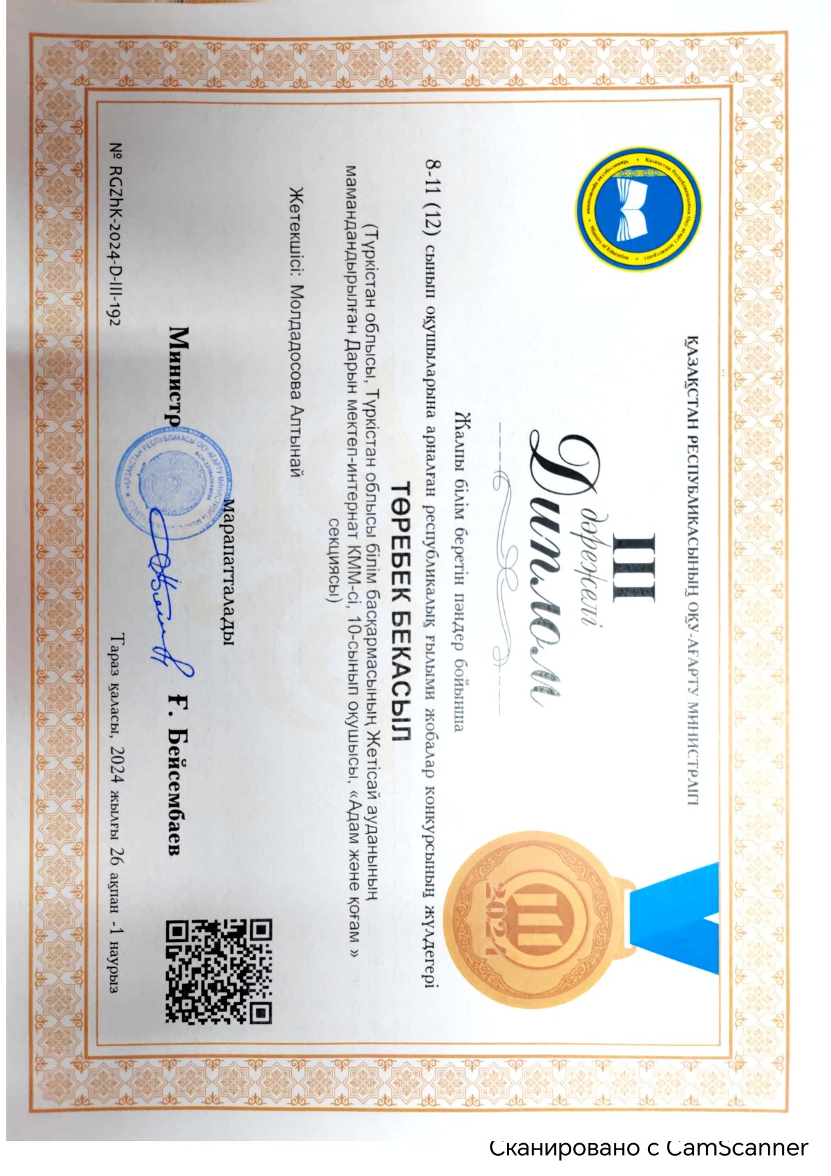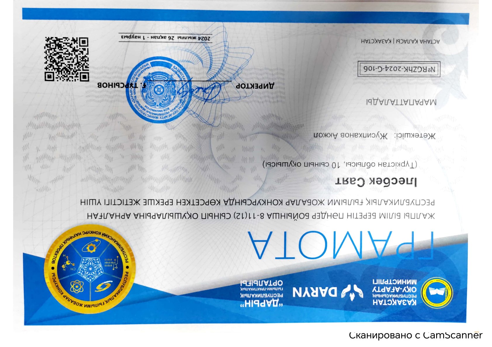 Мектебіне абырой сыйлап ,өз білімдерін дәлелдей білген шәкірттеріміз Қошқарбай Бексұлтан 2 орын иеленсе, Қалибек Қайсар Мақтау қағазымен марапатталды. Жарайсыңдар, жас дарындар, жеңіс құтты болсын!