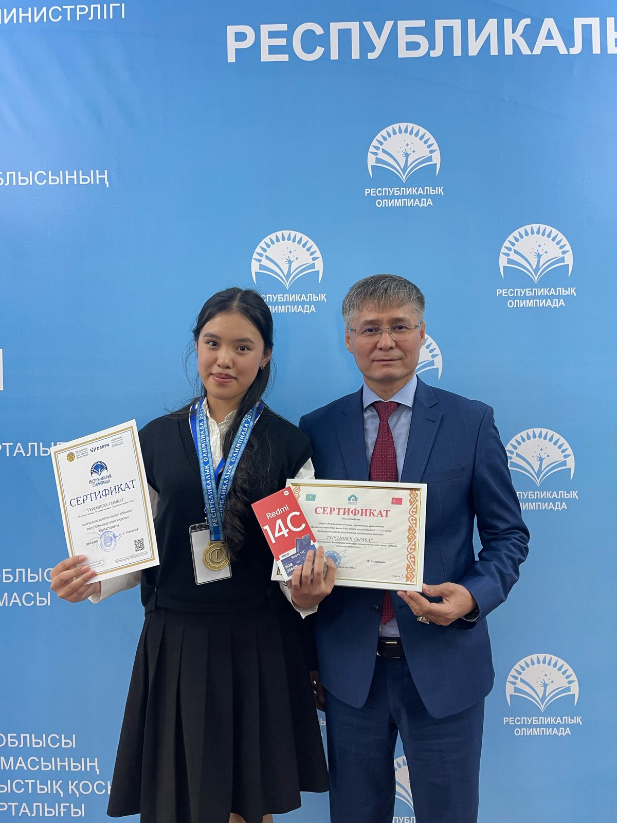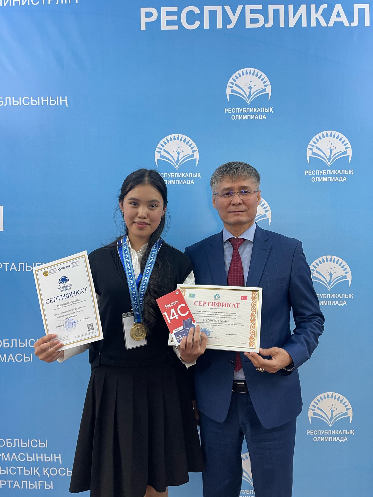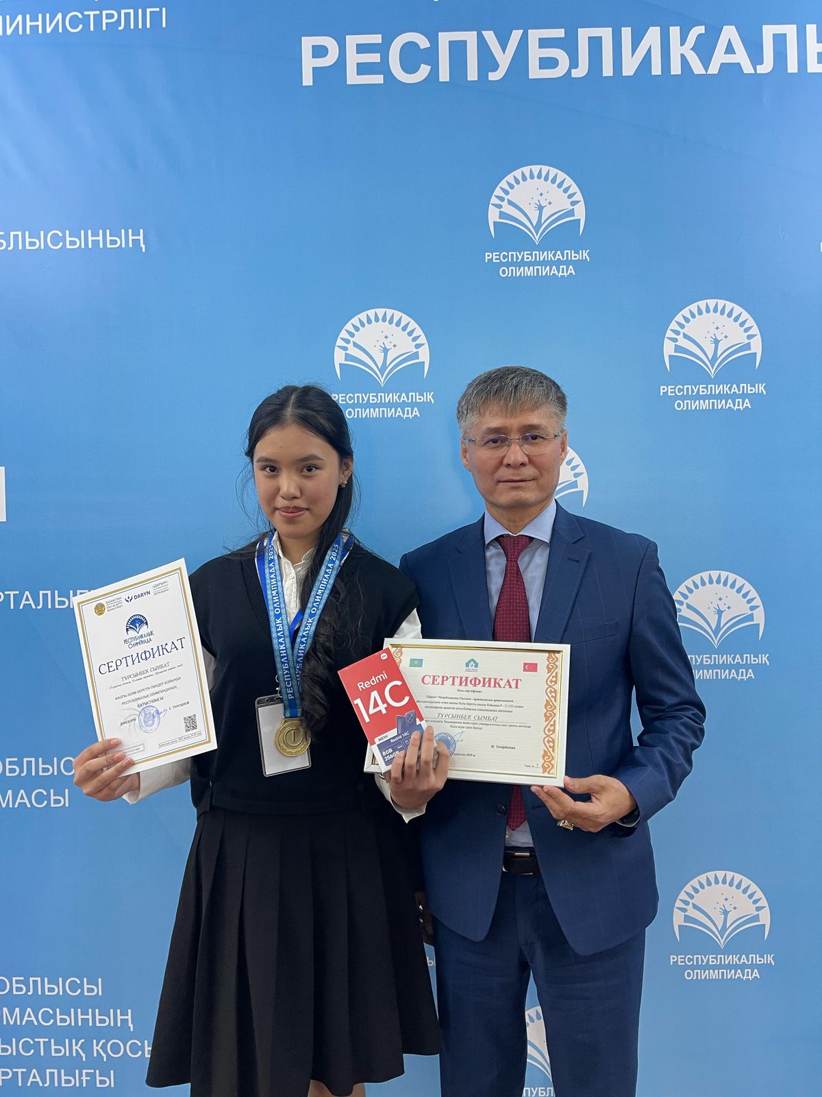 Тұрсынбек Сымбат Қазақстан тарихы,11- сынып - 1-орын, Халықаралық қазақ- түрік университетінің гранты(жетекшісі А.Молдадосова),