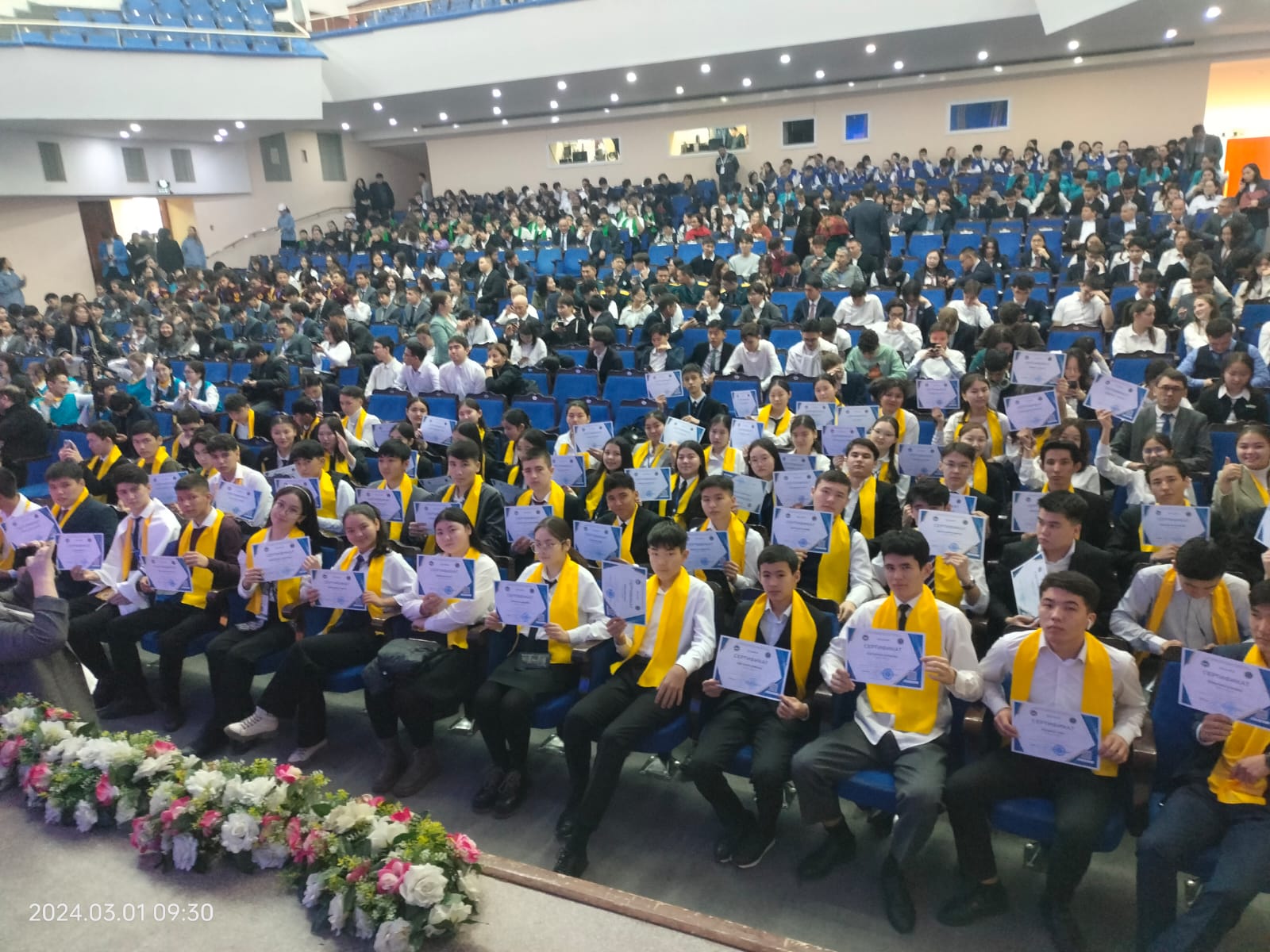 Шешендік өнер байқауына қатысқан Қарсыбай Заңғар мен Аманқұл Ақберен-оқу озаттары, қоғамдық шаралардың белсендісі, ғылыми жобалар конкурсының жеңімпаздары.