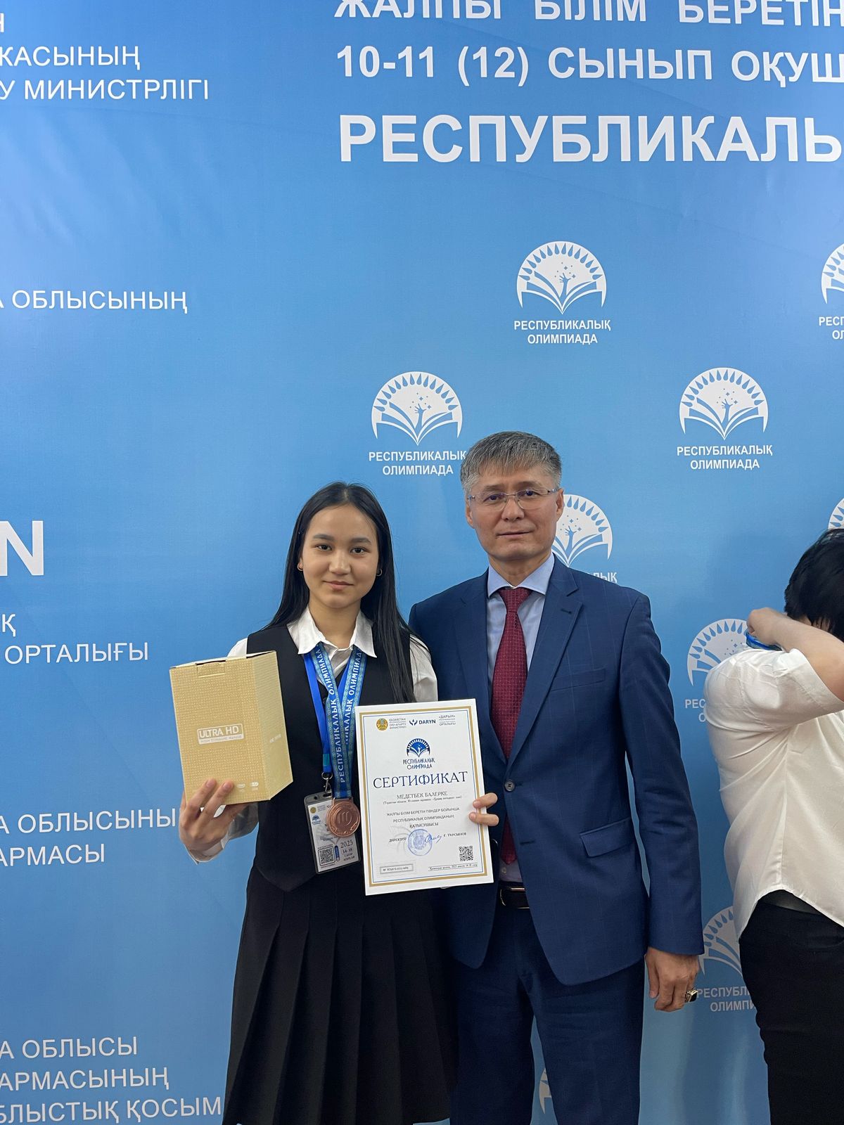Қазақстан Республикасы Оқу - ағарту министрлігінің «Дарын» республикалық ғылыми - практикалық орталығының ұйымдастыруымен 18 - 22 мамыр күндері мамандандырылған білім беру ұйымдарының, «Назарбаев Зияткерлік мектебі» ДББҰ және еліміздің жекеменшік мектептерінің 10 - 11 - сынып оқушылары арасында өтілген республикалық Қазақстан Білім Олимпиадасынан шәкірттеріміз жеңіспен оралды. Құттықтаймыз!