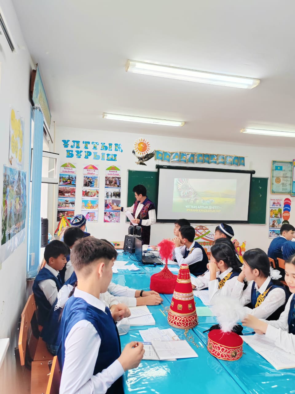 Құрметті оқушылар, бүгінгі біздің сабағымыздың мақсаты - заман өзгерсе де ұлттық салт - дәстүріміздің құндылықтарын жойып алмай келесі ұрпаққа жеткізу болмақ. Қазақ халқының әрбір тұжырымды ойы, мақал - мәтелі, тыйым сөздері - тәрбиенің мол мұрасы екендігін, оның күнделікті өмірде қажеттілігін көріп жүрміз. Халқымыздың әдет - ғұрыппен дәстүрін, тарихын біліп, оны қастерлеп, бүгініміз бен келешегімізге сіз болып біз болып дәріптеп жүрейік.