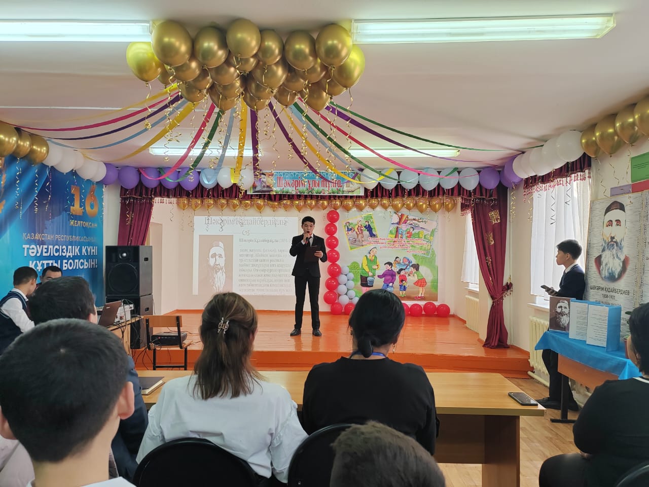 2 - жүргізуші: Кешегі ауыр да күңгірт заманда жалын боп жанып өткен Шәкәрімнің осы мұрасы туған халқы үшін ешқашан да сарқылмайды. Шәкәрім туған елін қаншама сүйсе, елі үшін күңіреніп, тебіренсе бүгінгі ұрпақ оны сонша құрметпен сүйіп отырЕсімі ел есінде мәңгілік сақталсын!Ендеше келесі сөз кезегін мектебіміздің сөз кезегін берейік.