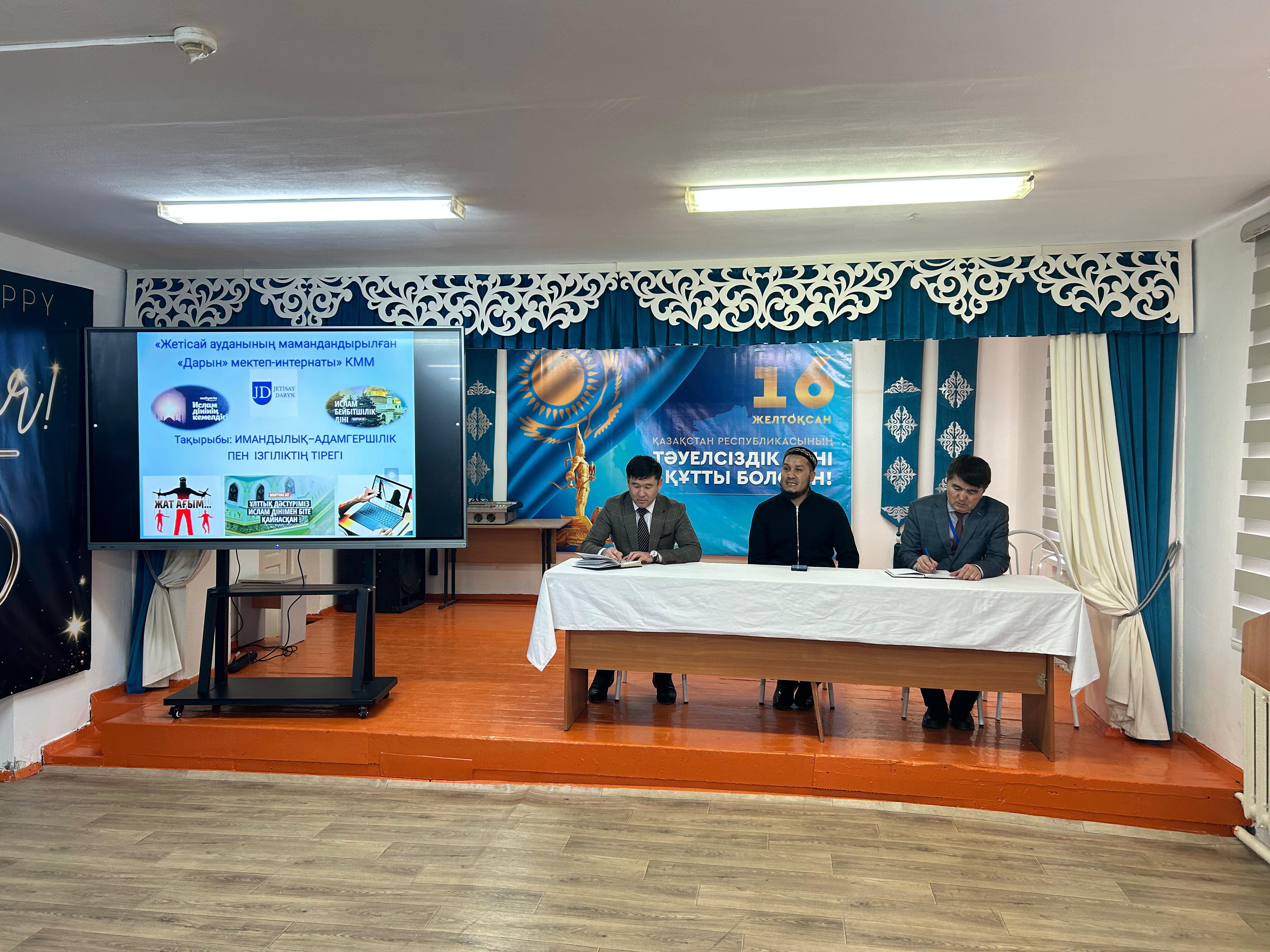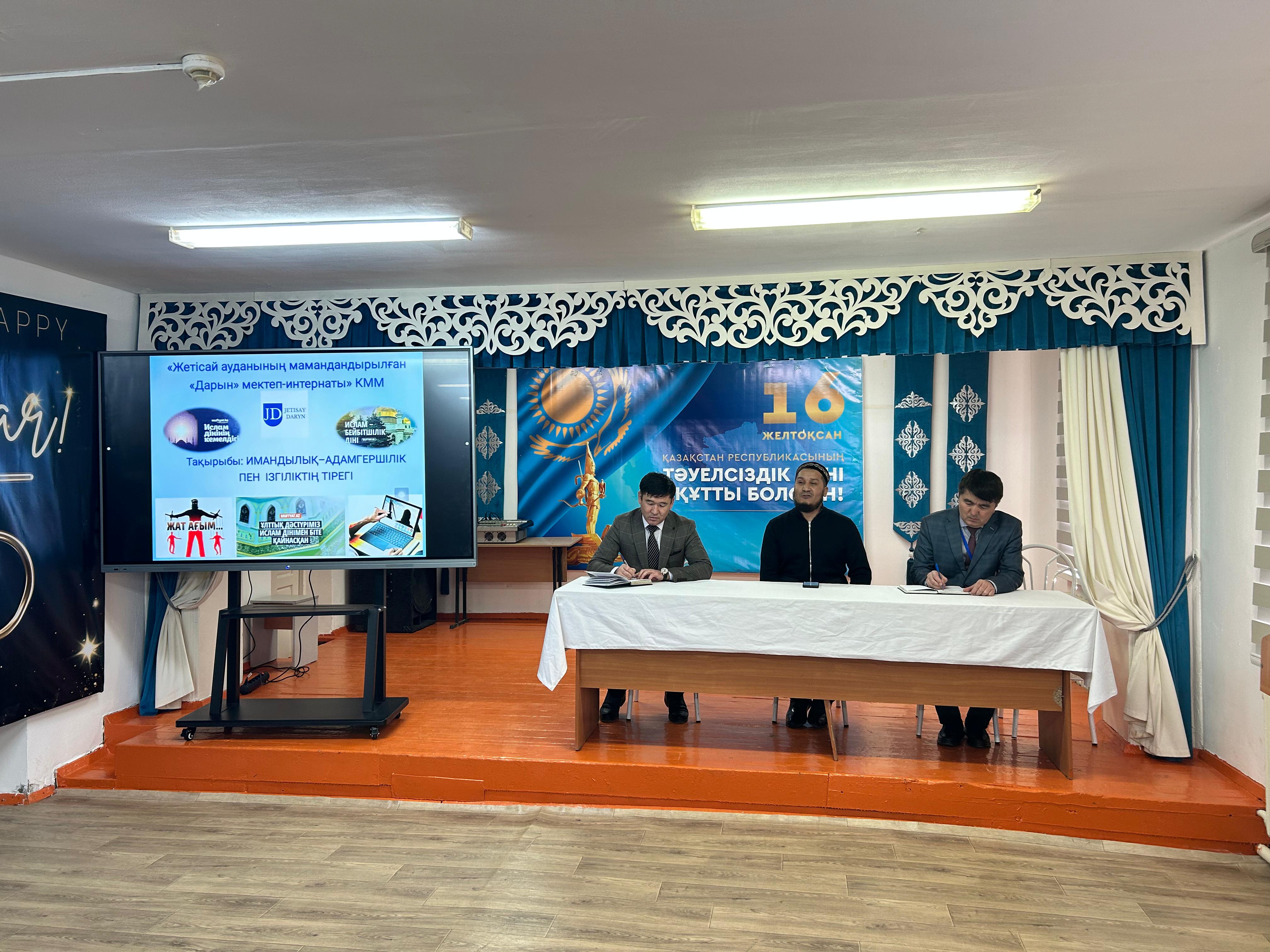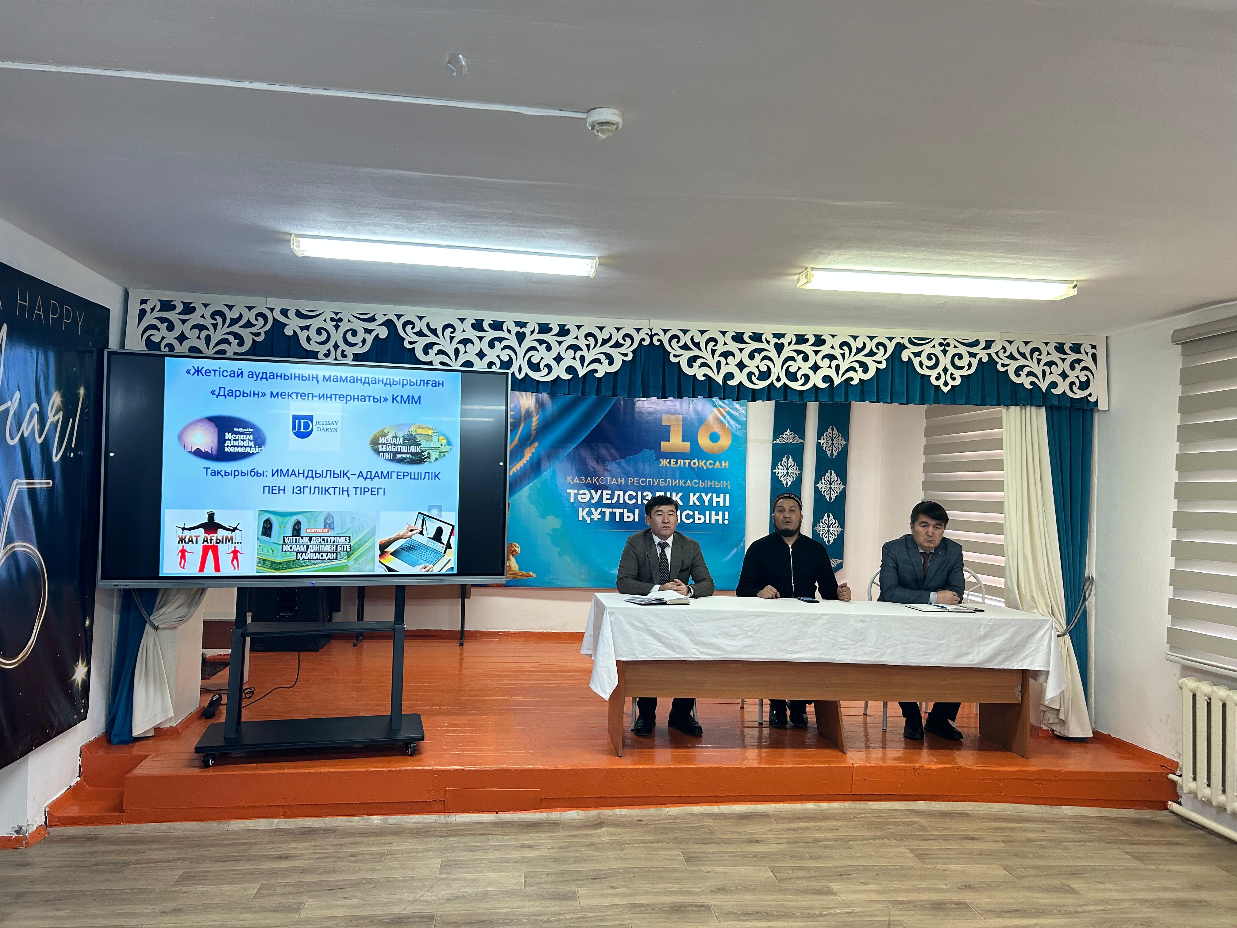 Имандылық – адамзат қоғамының іргетасы, адамгершілік пен ізгіліктің сарқылмас бастауы. Бұл ұғым- адамның ішкі жан дүниесін байытып, оны жақсылыққа, ізгілікке, әділеттілікке ұмтылдыратын рухани құндылық. Имандылық – адамның бойындағы сенімнің, тазалықтың, мейірімділіктің көрінісі. «Жетісай ауданының мамандандырылған «Дарын» мектеп-интернаты» КММ-сінде ДТІЖО Нұрмағанбетов Нұрлыбек Ахметжанұлының ұйымдастыруымен «ИМАНДЫЛЫҚ – АДАМГЕРШІЛІК ПЕН ІЗГІЛІКТІҢ ТІРЕГІ» тақырыбында өкіл имам Тухтаев Умиджан мырзамен кездесу болып өтті. Имамның уағыз-насихатын тыңдап,оқушылар өздерін толғандырып жүрген сауалдарын қойды. Имандылық туралы өрбіген әңгіме барысында өкіл имам оқушыларға мұсылман адамның бойындағы әдептер, ата-ананы сыйлау, Отанды сүю секілді жақсы мінез-құлыққа ие болу жайында айтты.