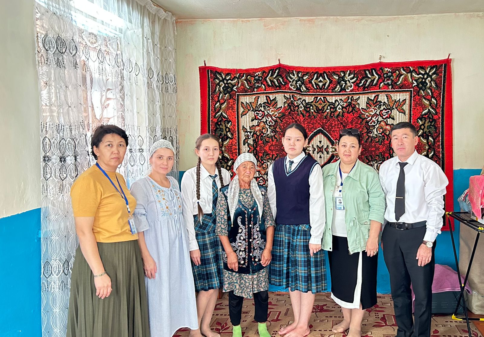 Осындай мерекеде «Жетісай ауданының мамандандырылған «Дарын» мектеп-интернаты» коммуналдық мемлекеттік мекемесінің ДТІЖО Нұрмағанбетов Нұрлыбек ағай, әлеуметтік педагогы Байбосынова Лаззат, педагог-психолог Рахимова Бибігүл, мектеп-интернатында оқитын оқушыларымен біргелікте, бүгінгі жас буынға үздік үлгілі, өнегелі тәрбие, халқымыздың қадір-қасиетін сіңіру, тәлім тәрбиенің ата ақылымен берілетіндігін, үлкенді сыйлай білуге тәрбиелеу, сонымен қатар қайырымдылық - жақсылықтың бастауы екенін түсініп, үлкендерге мейіріммен қараудың маңызын ұғындыру. Қарт кісілерге көңіл бөлу, құрмет көрсету арқылы оқушылардың адамгершілік қасиеттерін дамыту мақсатында, Жетісай ауданы Жұмыспен қамту және әлеуметтік бағдарламалар бөлімінің мамандарымен байланыс жасап, әлеуметтік педагог Байбосынова Лаззат апай мен ұстаздар қауымы демеушілік жасап, әлеуметтік қолдауды қажет ететін отбасыларға, жалғыз басты қарттарға, мүмкіндігі шектеулі жандарға, асыраушысынан айрылған және толық емес отбасыларға, аз қамтамасыз етілген ерекше қамқорлықты қажет ететін отбасыларға қайырымдылық көмек көрсетілді. Осындай белсенді көмек көрсеткен ұастаздар мен жастарға қария апамыз Джанбосинова Ақша Сапаралиқызы өз ризашылығын шексіз жаудырып, ақ батасын берді.