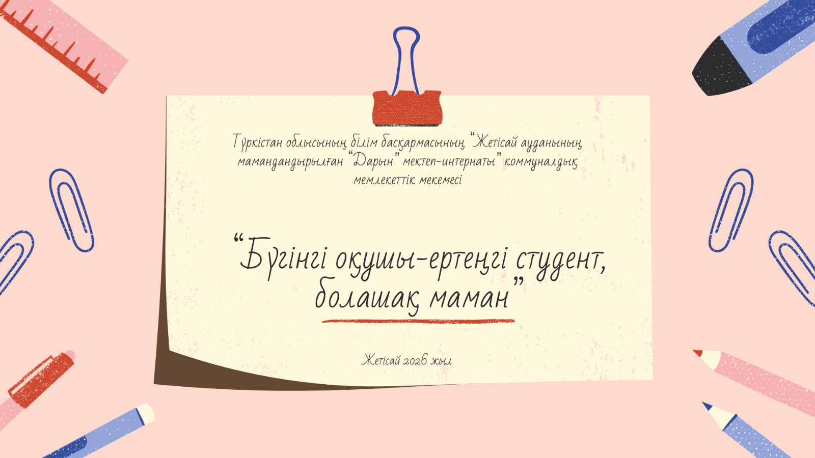 Бүгінгі кездесудің басты мақсаты – сіздерге болашақ мамандықты дұрыс таңдауға бағыт-бағдар беру. Мамандық таңдау – әр адамның өміріндегі ең маңызды әрі жауапты қадамдардың бірі. Себебі дұрыс таңдалған мамандық – табысты болашақтың, жеке бақыт пен қоғамға пайдалы болудың кепілі. Қазіргі заманда мамандықтар әлемі өте кең әрі үнемі өзгеріп отырады. Ақпараттық технологиялар, медицина, білім беру, инженерия, ауыл шаруашылығы, қызмет көрсету салалары – барлығы да білікті мамандарды талап етеді. Сондықтан мамандық таңдауда тек атақ-абыройына немесе жалақысына ғана емес, өз қабілетіңізге, қызығушылығыңызға және бейімділігіңізге назар аудару өте маңызды.