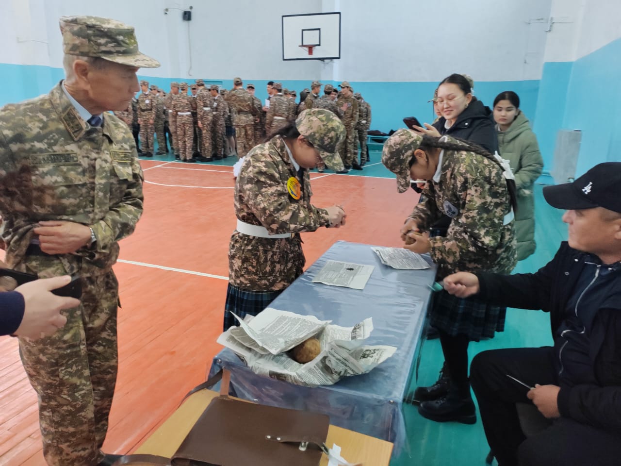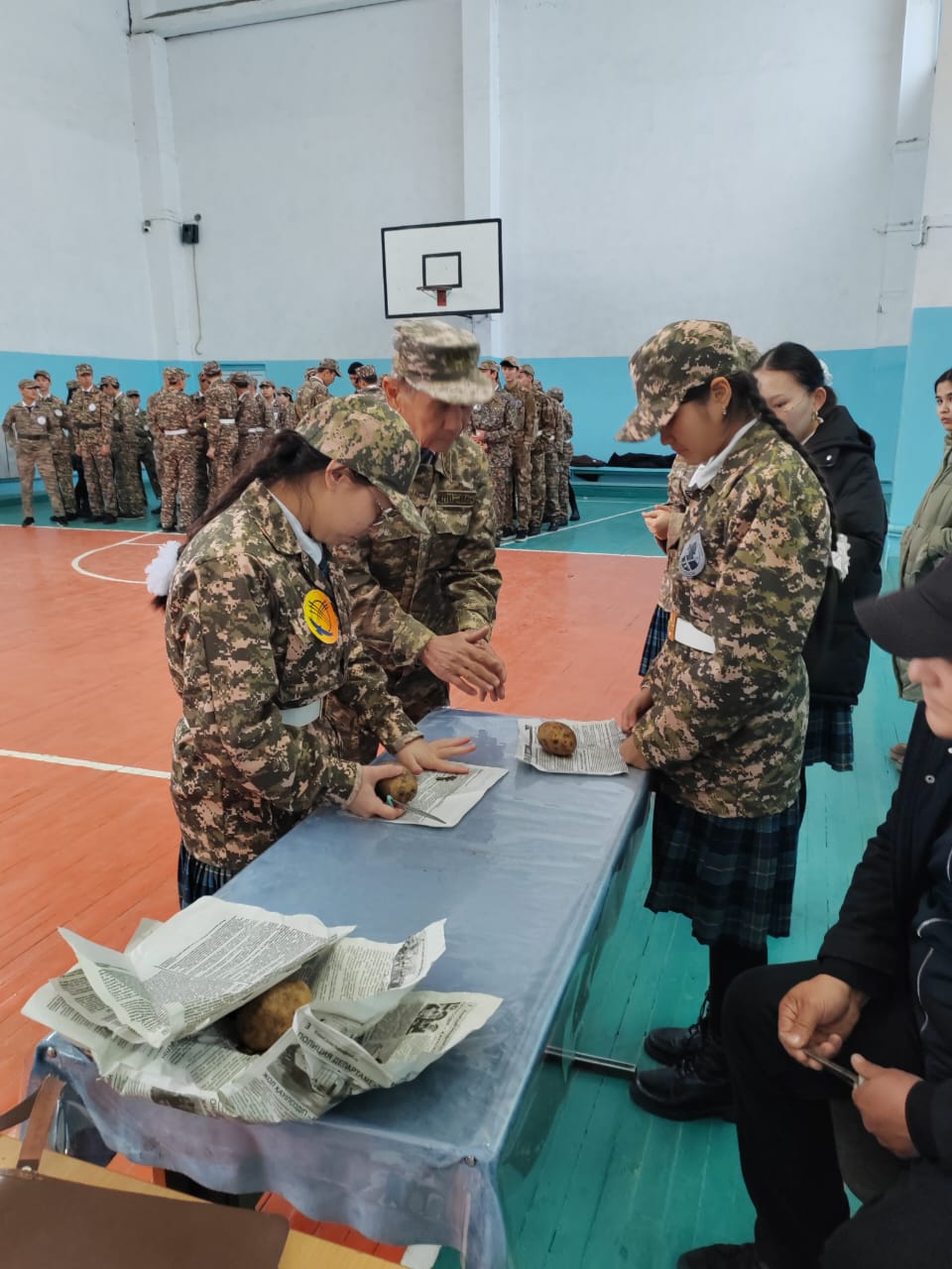 10- сынып оқушыларының қатысуымен өтілген бұл іс- шарада жас ұрпақтың Отан алдындағы парызы, борышы туралы насихатталып, түрлі спорттық ойындар көрсетілді. Жас дарындар білімде ғана емес, әскери жаттығуларда да ептілік танытып, іс- шараға белсене қатысты.