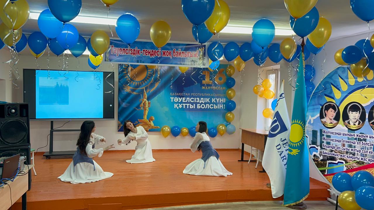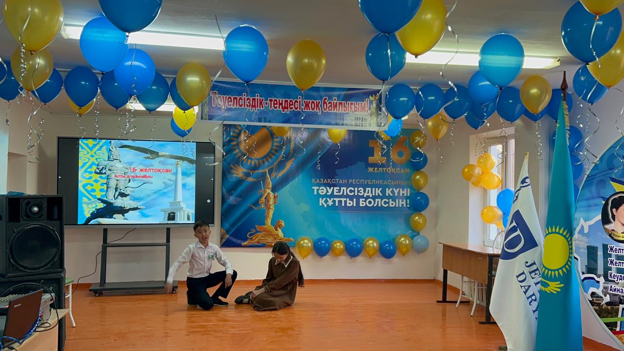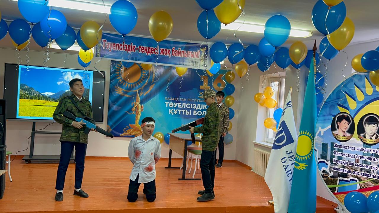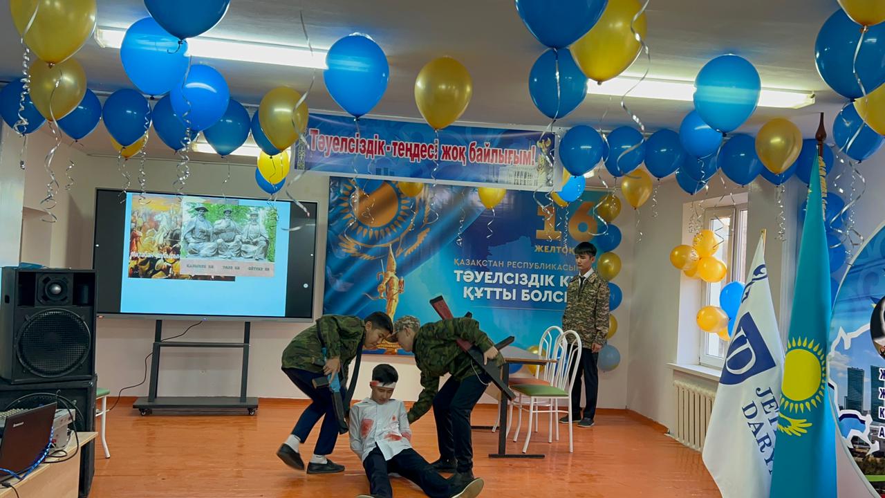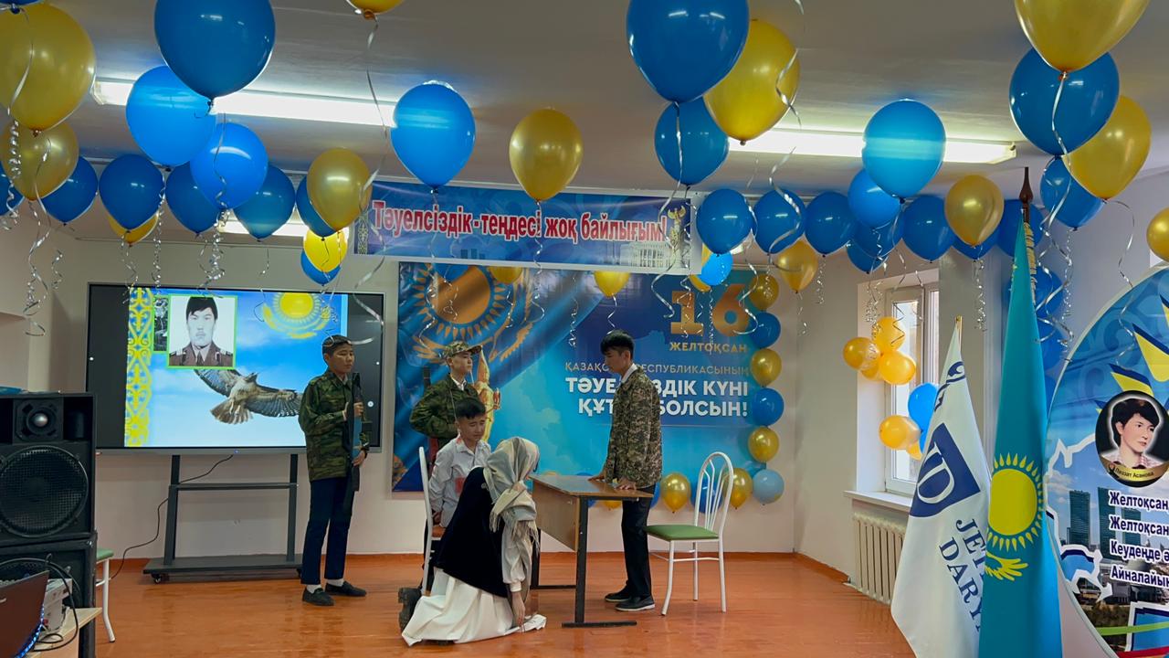 «Жетісай ауданының мамандандырылған «Дарын» мектеп-интернаты» КММ-сі 8 «Б» сынып оқушыларының қатысуымен тәрбиеші Шайдулина Ғалия Қалижанқызы «Тәуелсіздік –теңдесі жоқ байлығым» тақырыбында мерекелік іс-шара өткізді. Мектеп директоры Алиев Көбей Амирбекұлы ізгі ақ тілегін арнап, кеш шымылдығын ашып берді. Жоғары деңгейде ұйымдастырылған бұл іс-шарада ән мен жырдан шашу шашып, мың бұрала билеген бишілер, «Елімнің еркіндігі - Тәуелсіздік!» деп, жырлаған рухты ақындар, сахналық қойылымдар көрермендерді тәнтті етті.