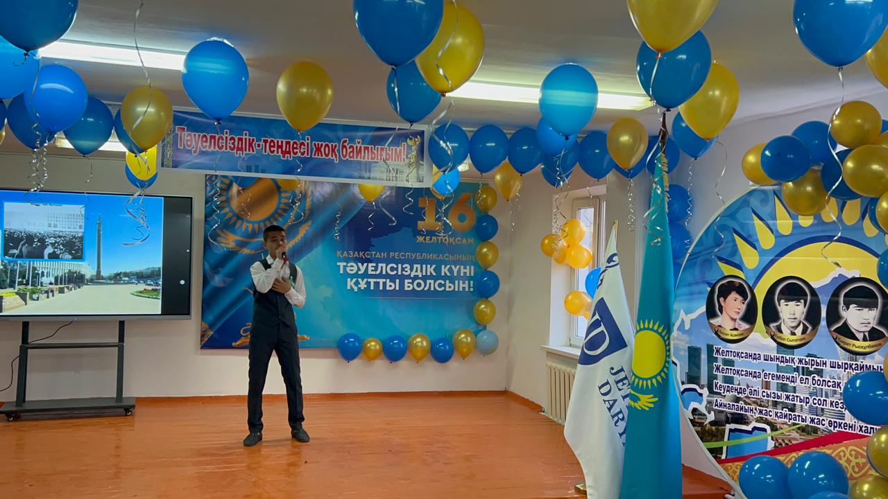 Әрбір азаматтың қажырлы еңбегінің арқасында сүйікті Отанымыз гүлденіп, көркейе берсін! Желтоқсанның екпінімен келген Тәуелсіздіктің маңызы қашан да зор болмақ. "Толарсақтан саз кешкен" батыр бабаларымыздың қанымен, ұлы мұраттар жолында құрбан болған асыл азаматтарымыздың асқақ армандарымен, аналарымыздың көз жасымен жеткен Тәуелсіздікті әрқашан қастерлей білуге тиіспіз. Бұл - біздің азаматтық парызымыз бен борышымыз.