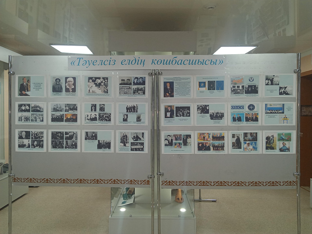 өлкетану музейінде ұйымдастырылған көрме. Көрмеде тұңғыш президентіміз